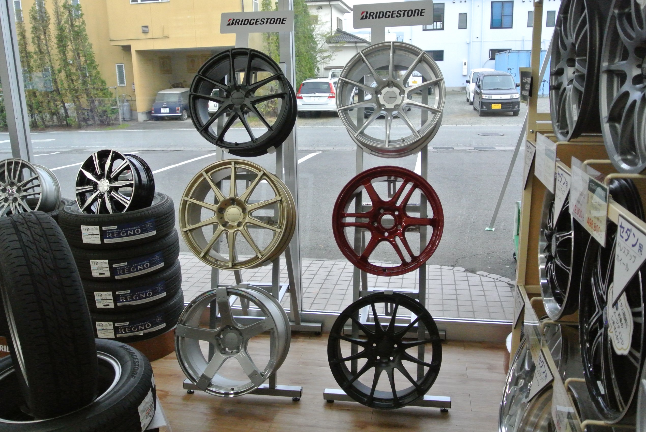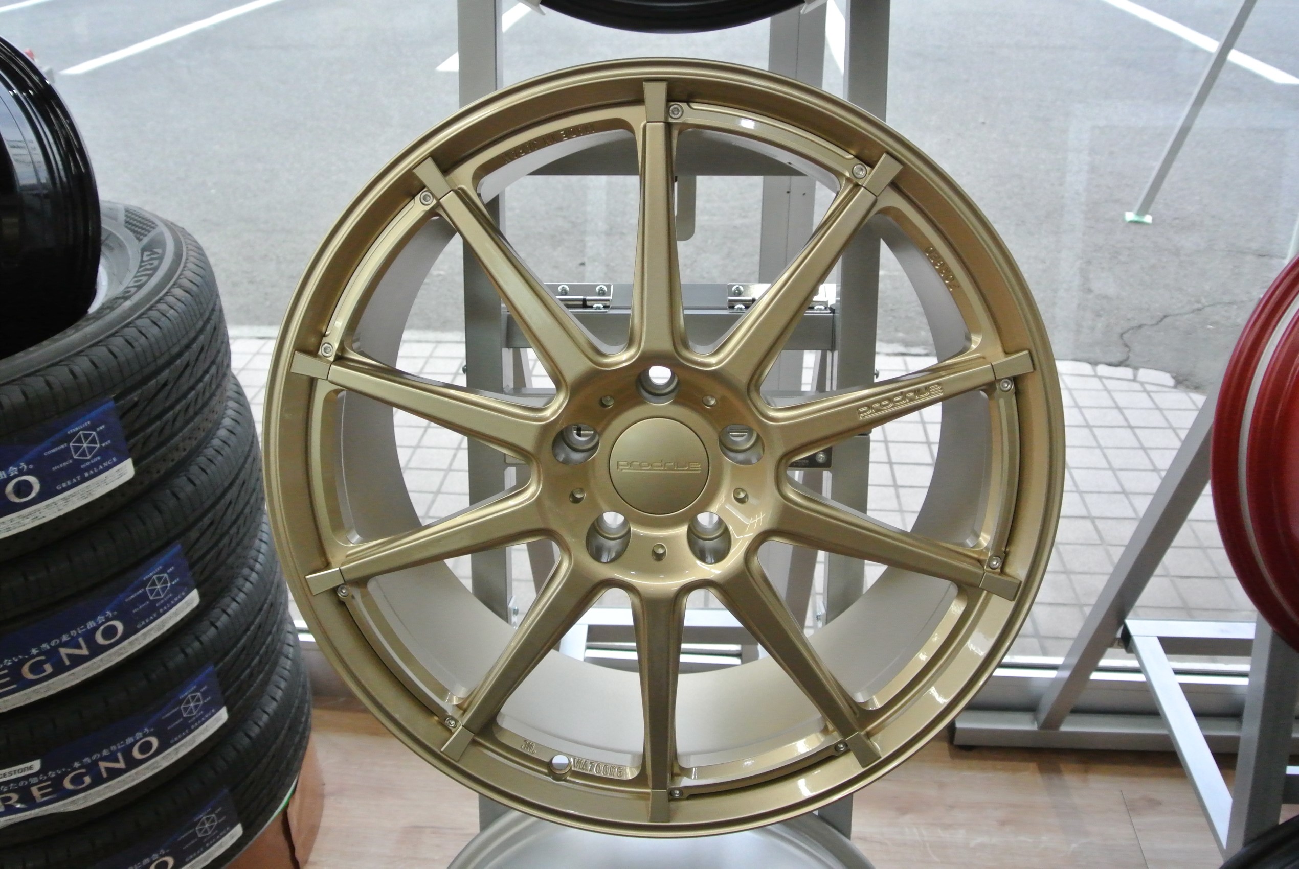 タイヤ館こせ店ではブリヂストン製鍛造ホイールプロドライブを展示中です。