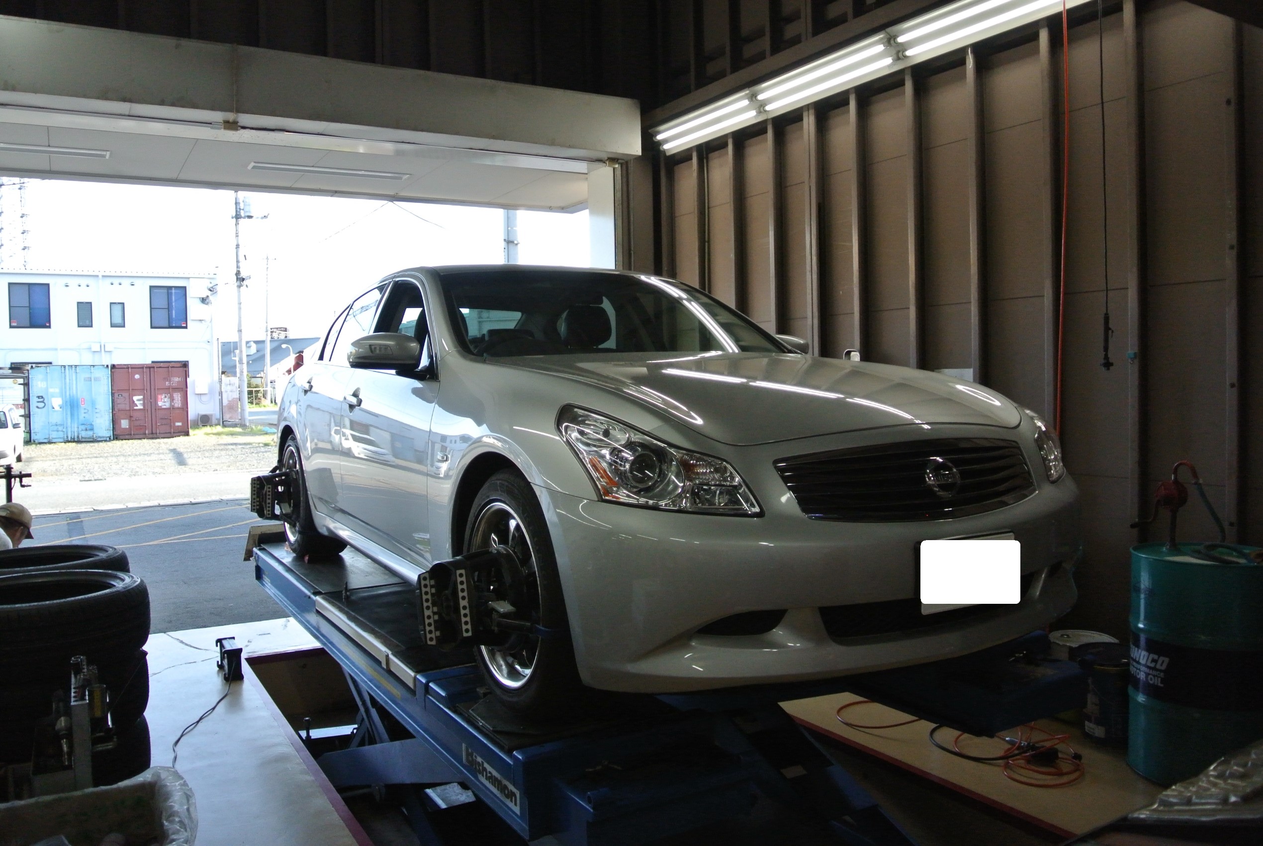 根強い人気のV36型ですがリアタイヤを新調したので今回調整となりました。