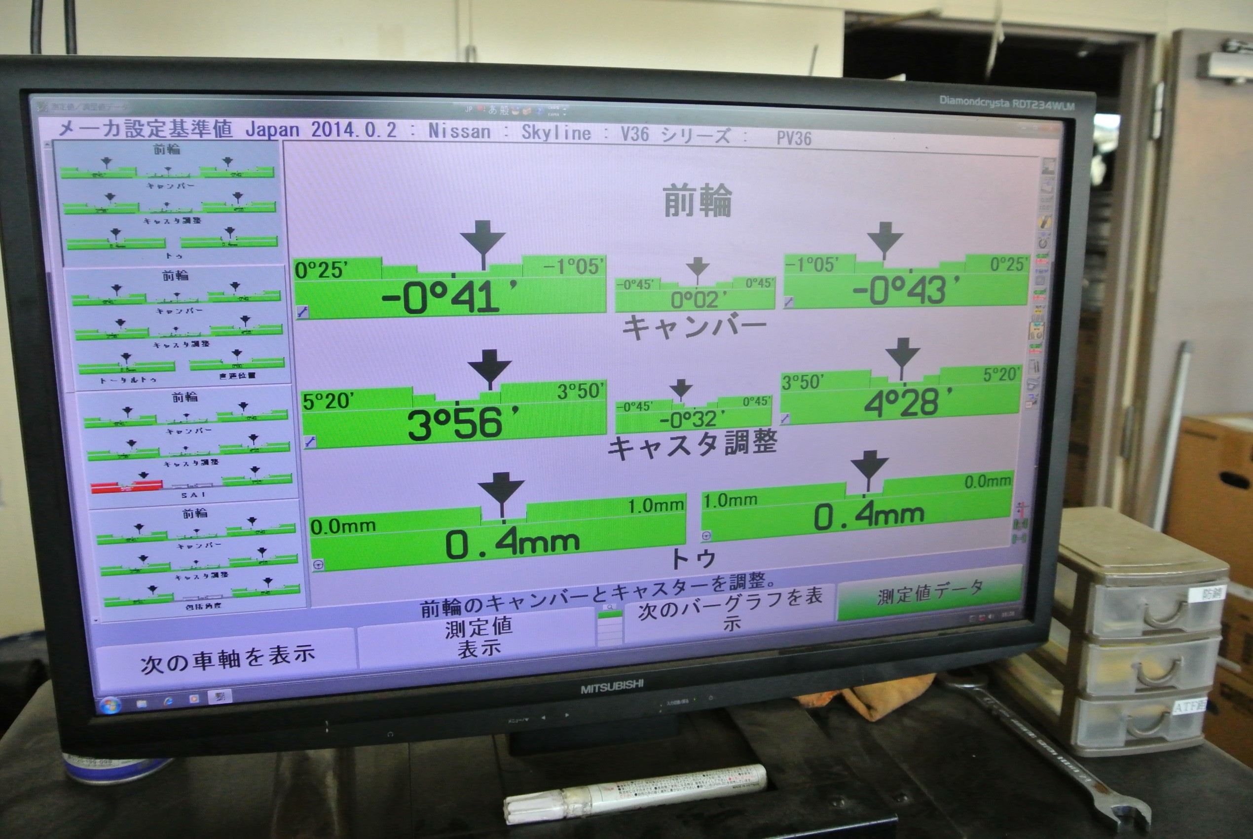 スカイラインのアライメント調整を行いましたので紹介致します。