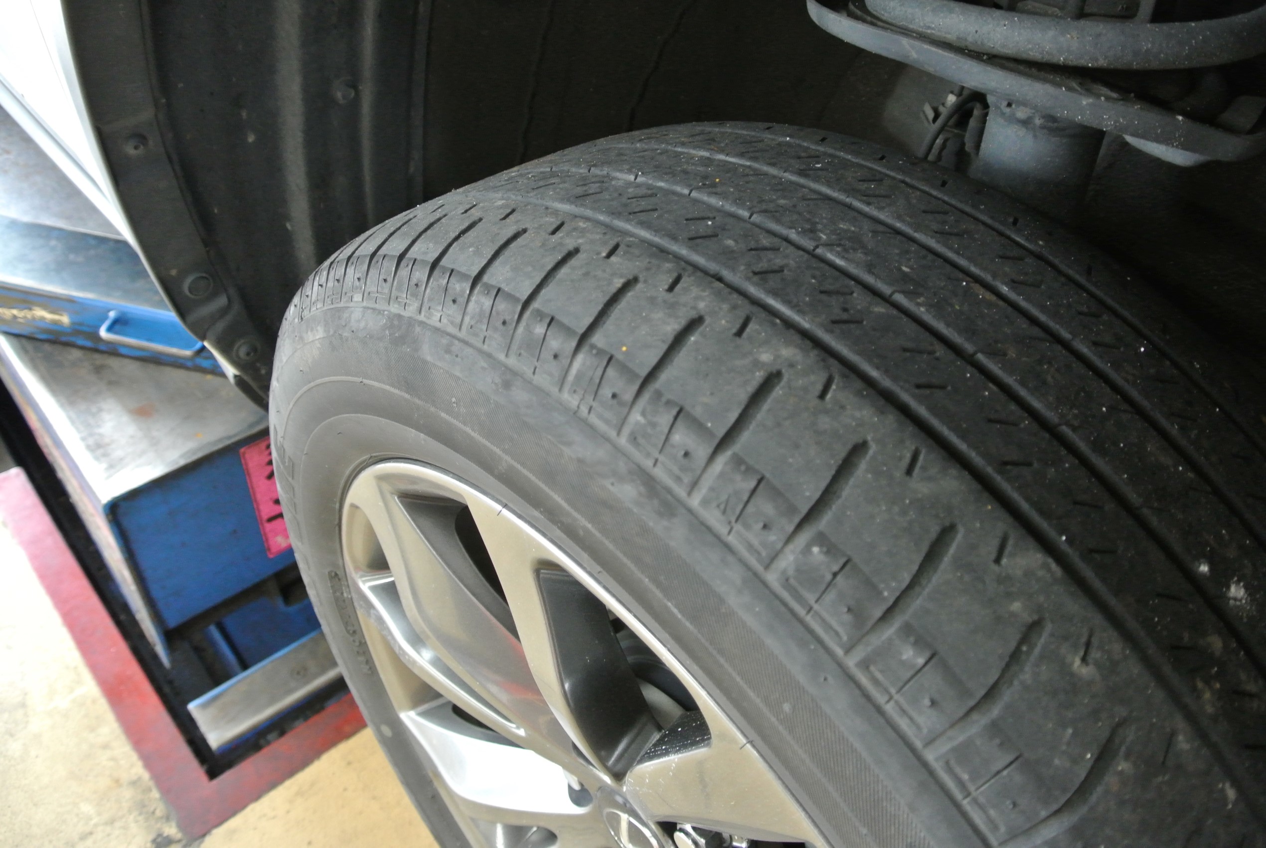 走行も5万キロになりタイヤの溝がだいぶなくなった状態での入庫です。