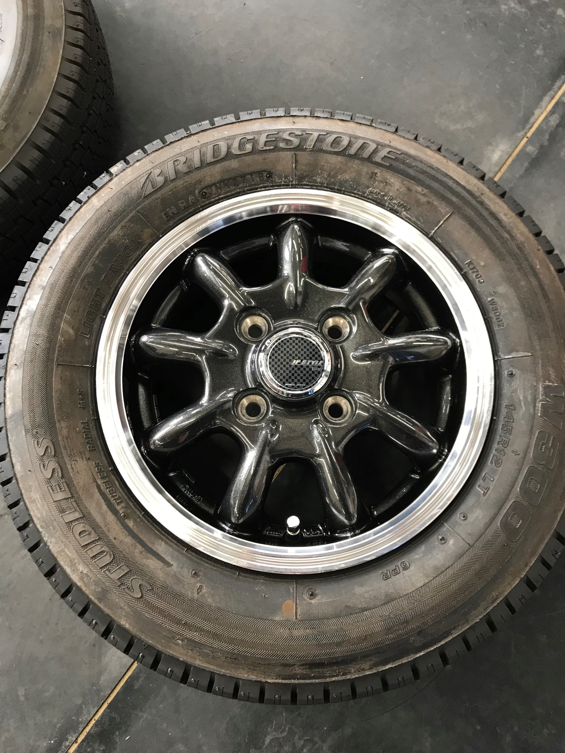 日産クリッパーにJPスタイル Bany装着 ポスト 2020年1月13日 本日もタイヤ館こせ店は元気に営業中♪ 日産クリッパーにJPスタイル Bany装着しましたので紹介致します。 今回装着したのは当店でもレトロクラシックとも言えるジャパン三陽製アルミホイール JPスタイル Bany(バーニー)です。 リムがポリッシュ加工されておりディスク部はラメ入りのブラックで仕上げてあります。 白いボディにリムポリッシュが映えますね! オーナー、この度はご購入頂きありがとうございます。 担当:西田