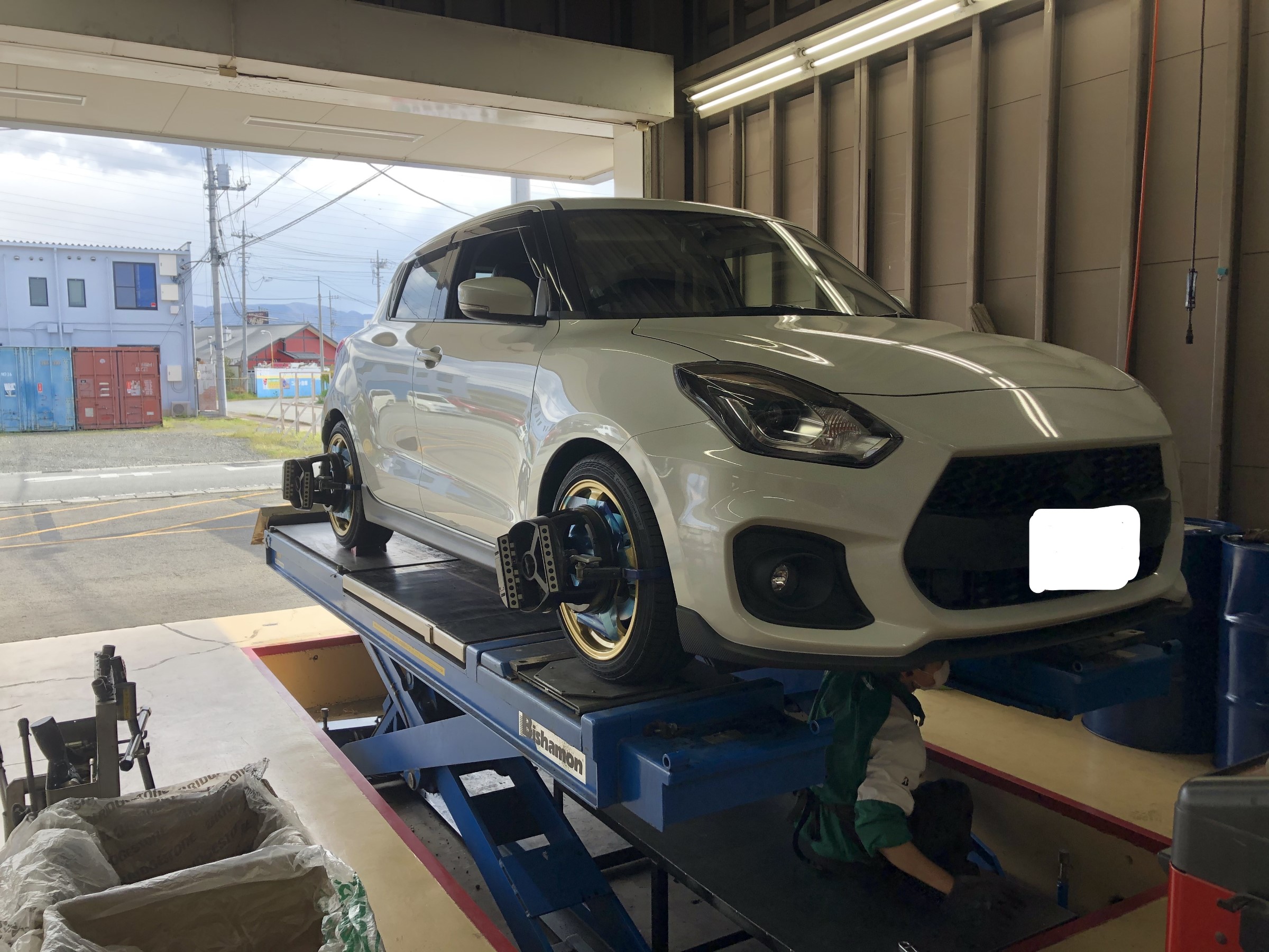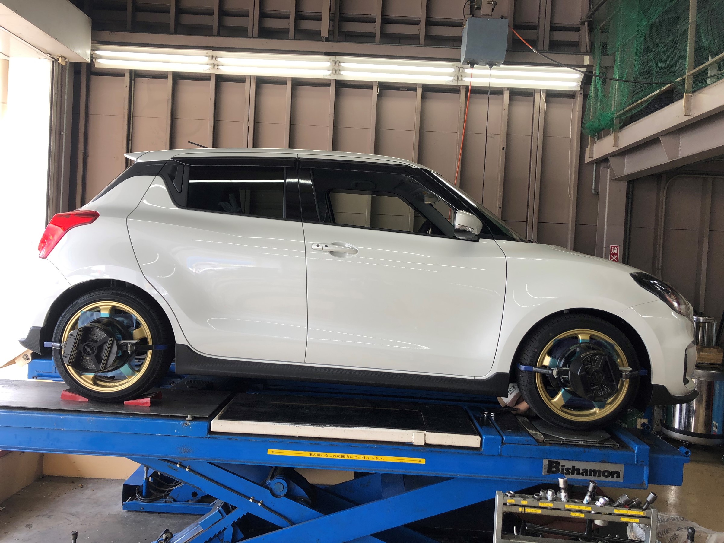 本日は足回りを交換されたスズキのスイフトのアライメントを行いました。