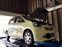 ご予約のミライース新品タイヤ、アライメントをさせていただきました。