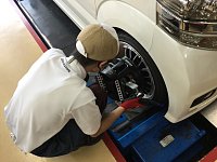 今日も暑かったですね。 新人スタッフ小林くんに準備を覚えてもらうため頑張ってもらいました。 調整前は、左に曲がっていたのですがそれを基準値に合わさせていただきました。 調整後締め付けの確認を行い試乗させていただきました。 直線でもまっすぐ走り、ハンドルも軽くなり運転が楽になりまし...