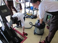 こんにちは! お掃除大好き四條です。 土日はたくさんの方にご来店頂きありがとうございました。 今日は作業で汚れたピット掃除をしてます。 小林、齋藤両スタッフがリフト下の掃除中です。 ピットも綺麗な状態でお客様をお迎えいたします。