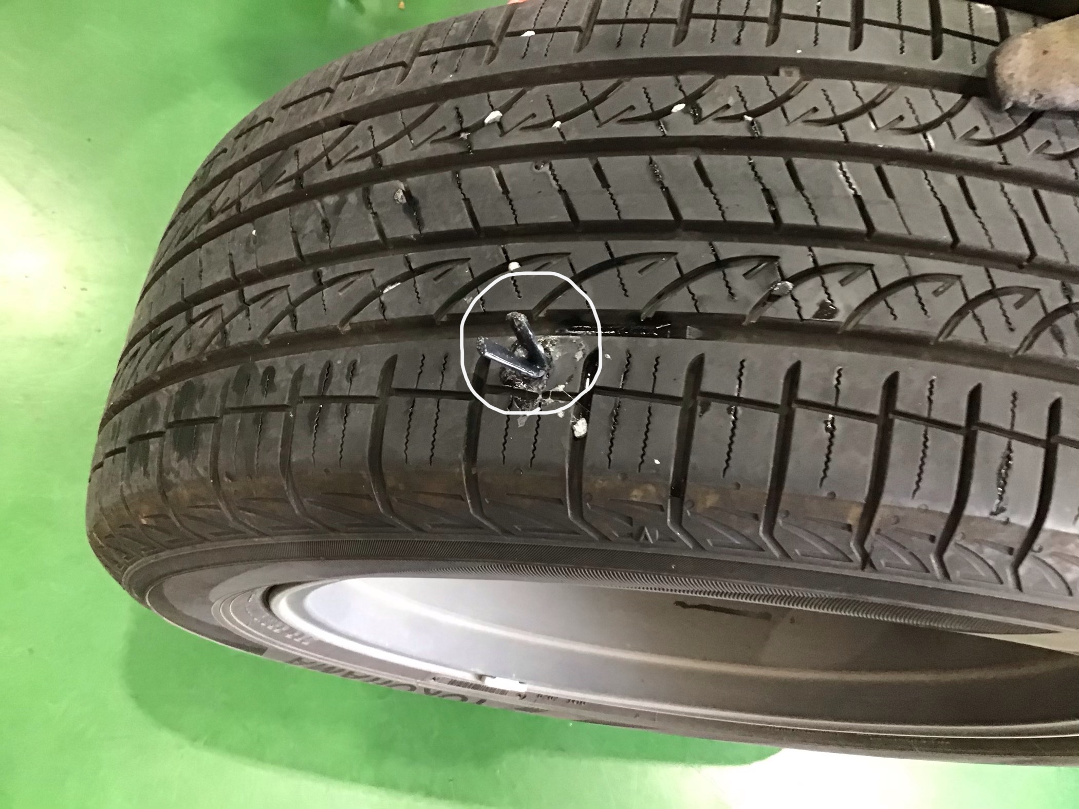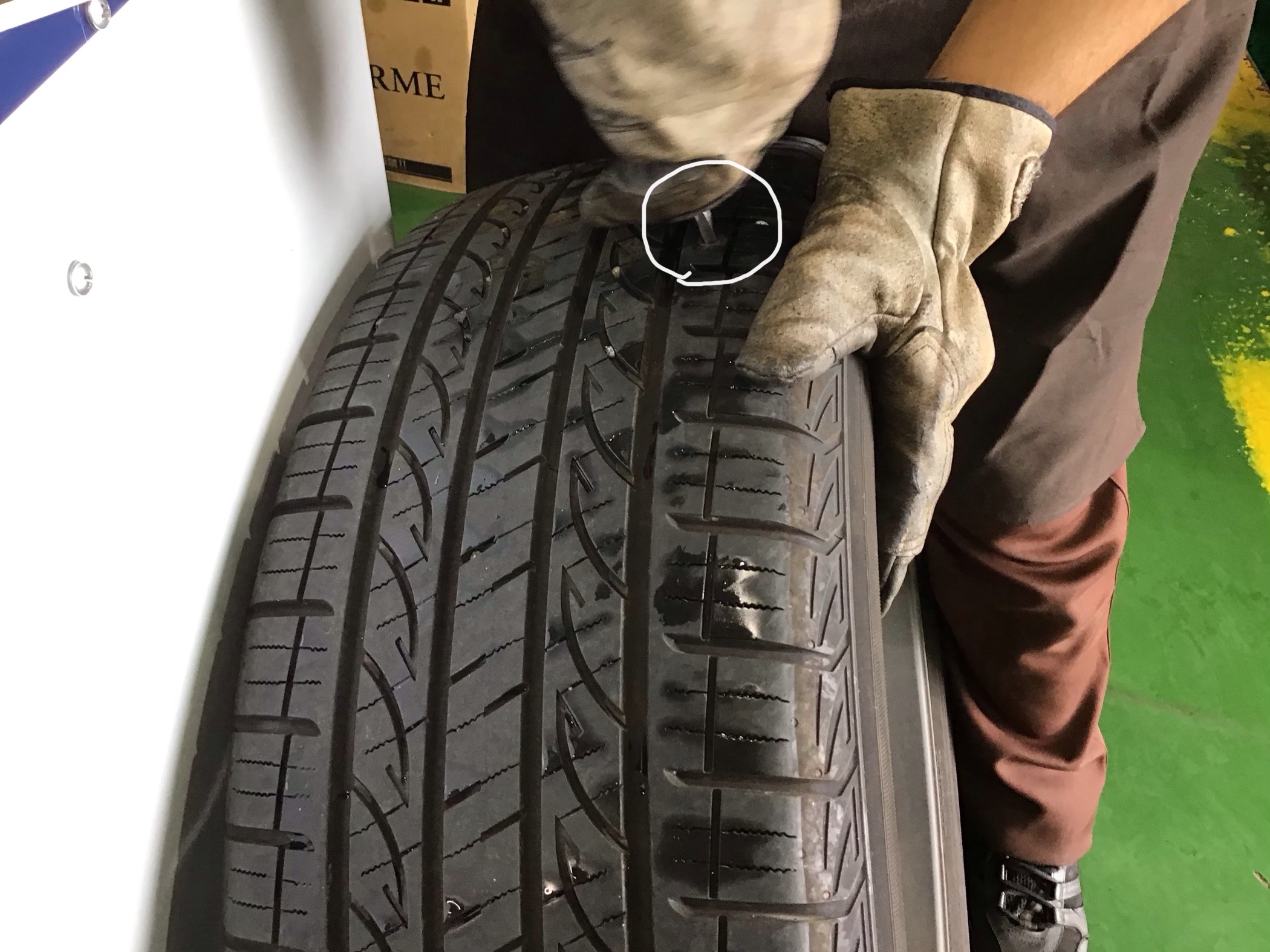 1、まず釘やネジ等の異物が刺さっている箇所を見つけ