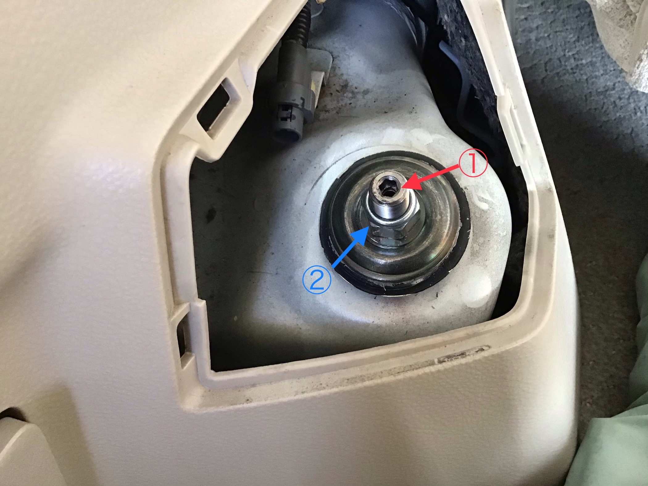 ↓①を六角レンチで抑えながら②をメガネレンチ締めつけます。↓