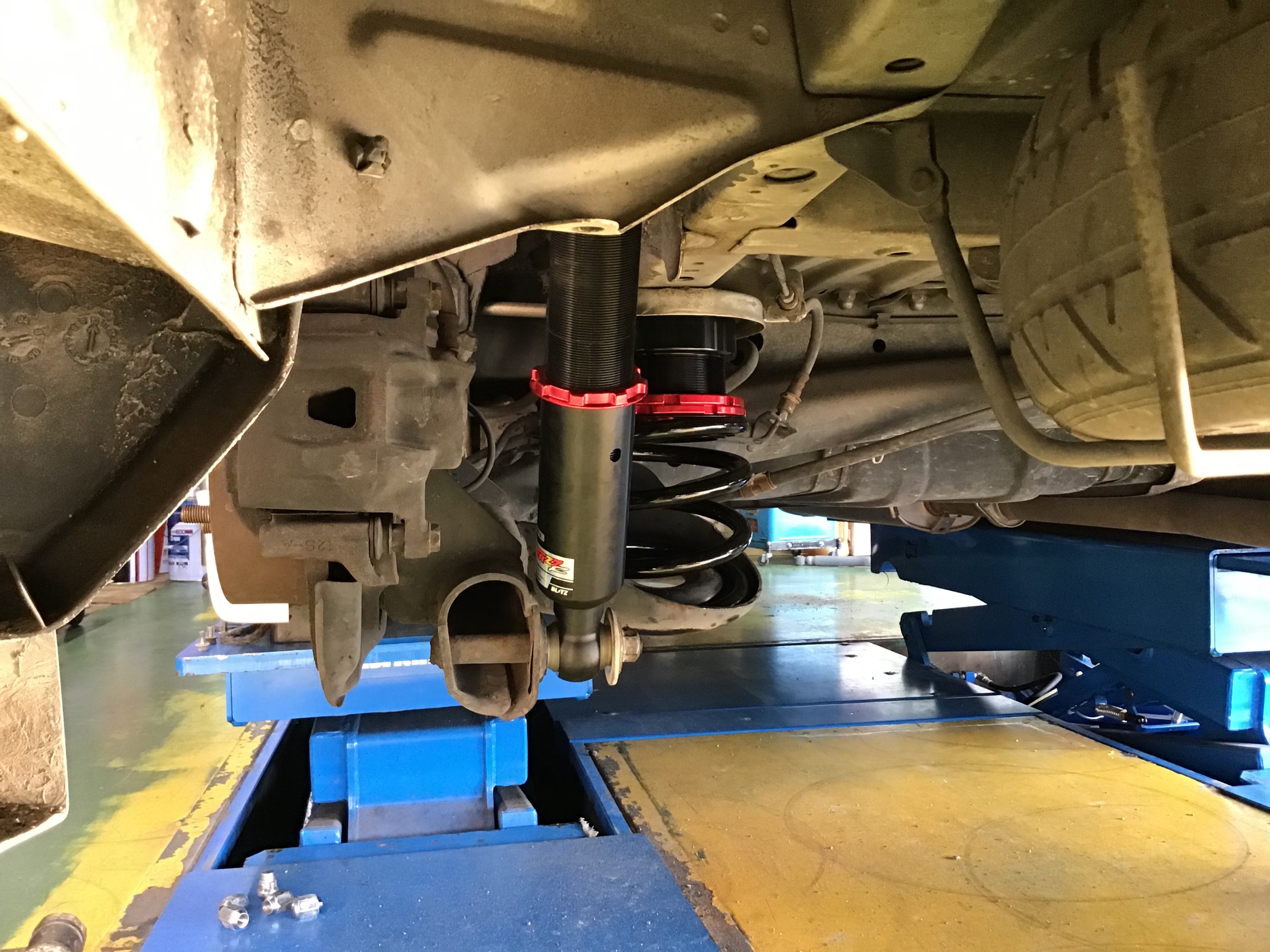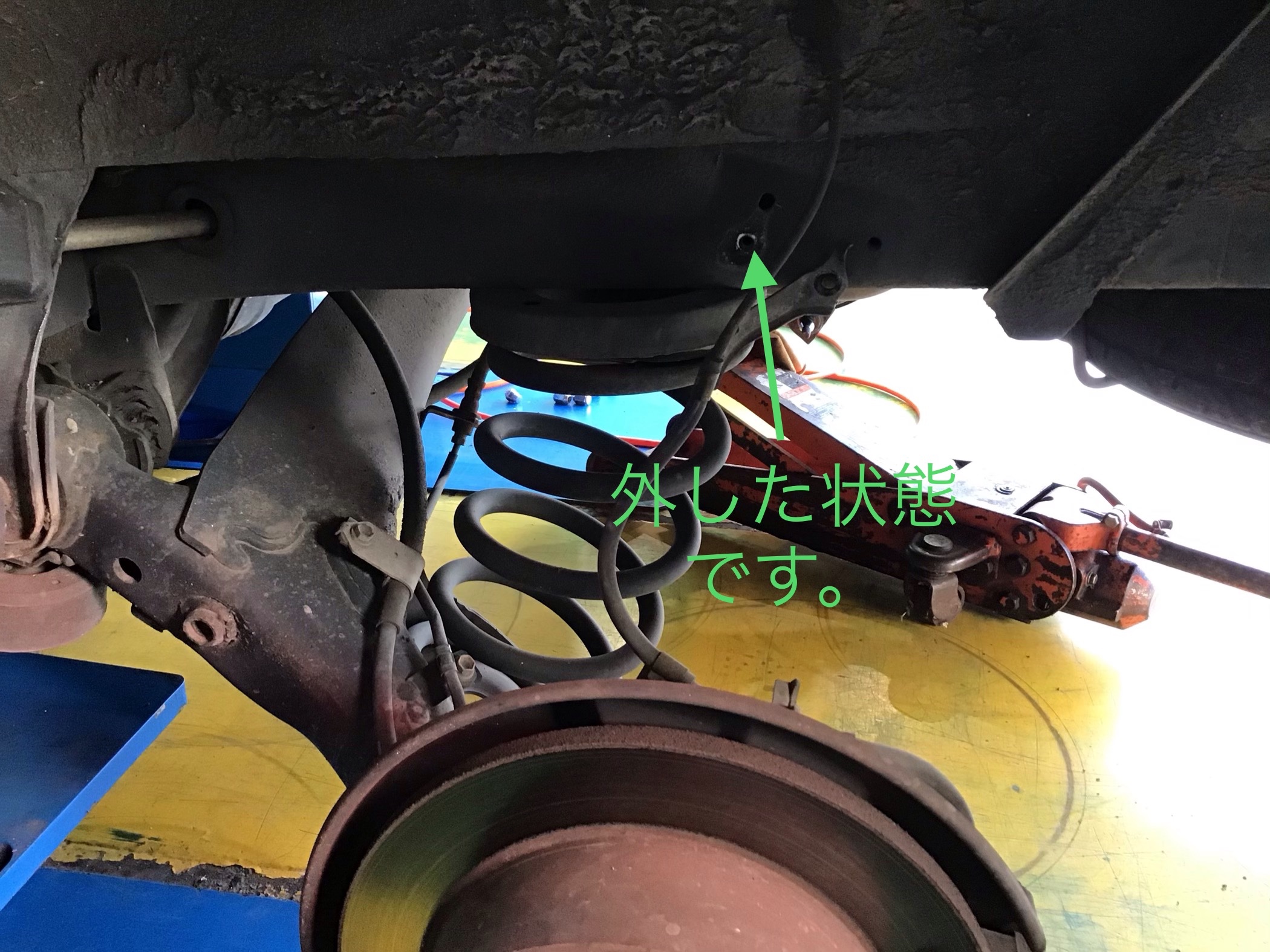 (2)リアのショックアブソーバーとスプリングを外していきます。
