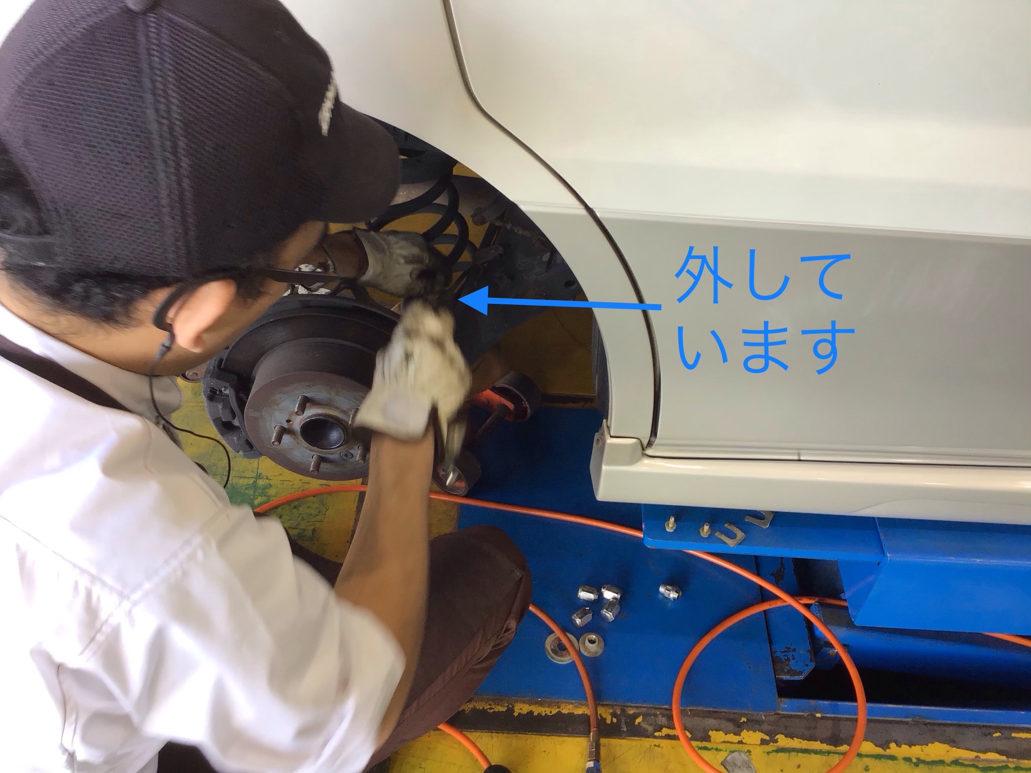 (1)まずはサスペンションを取り外す時に干渉するブレーキホース等を外していきます。