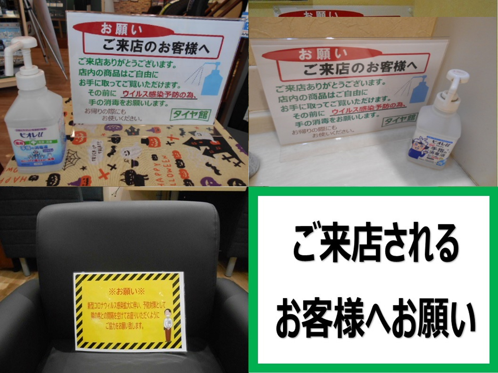 2)店舗入り口に消毒液をご用意してありますので、ご来店時と