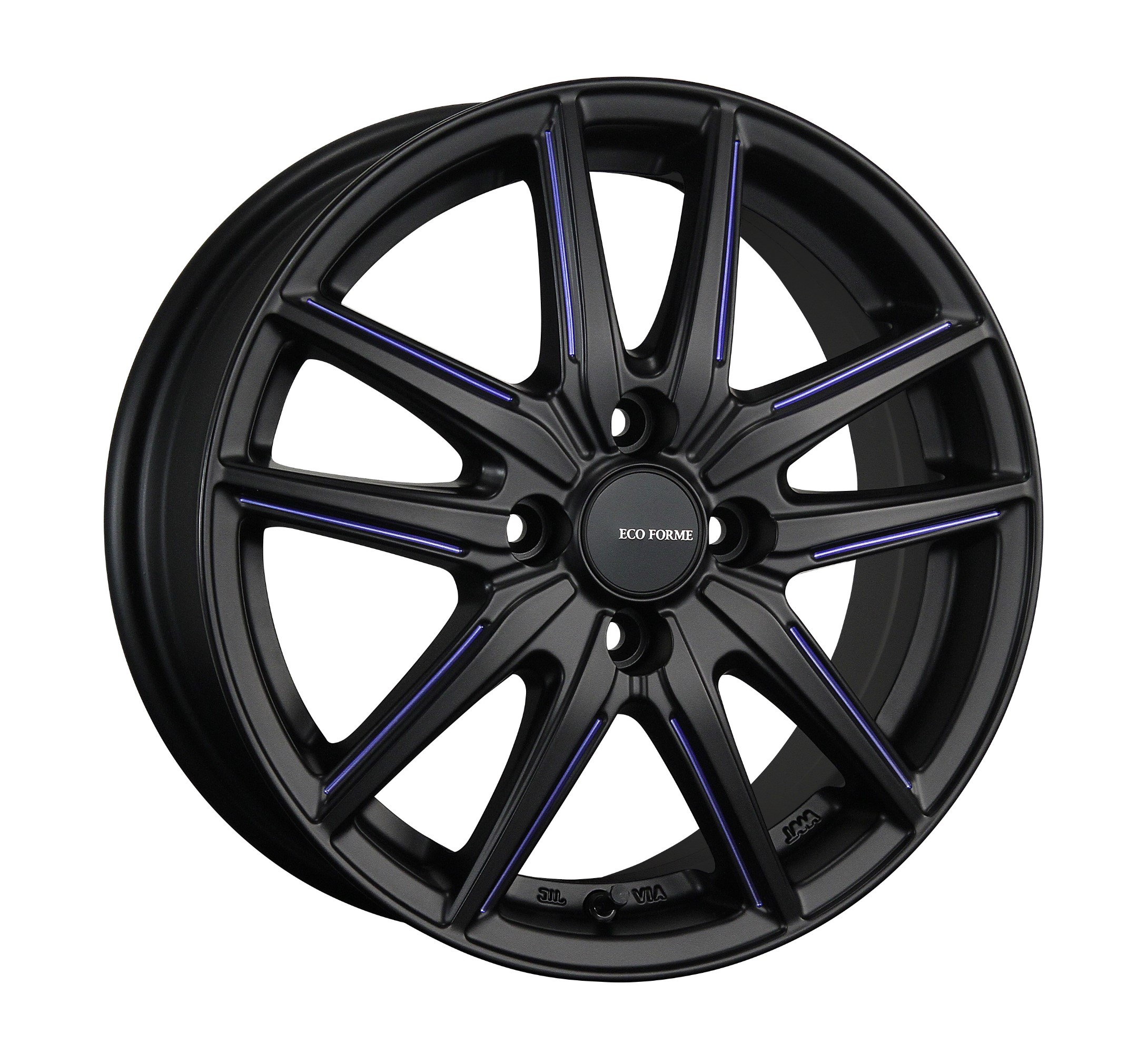 リムエンドまで伸びる2×5スポークデザインが大きな特徴のECO FORME SE-20をベースにして、新色マットブラックブルーラインを施すことで、安定感とダイナミックさに加えスタイリッシュさも兼ね備えた魅力的なホイールが「ECO FORME CRS20」です。ECO FORMEシリーズ初となるマットブラックが足元をシックに引き立て、さらにスポークデザイン面にカラークリア塗装で引いたブルーラインが、落ち着いた雰囲気の中にも軽快な印象を演出しています。