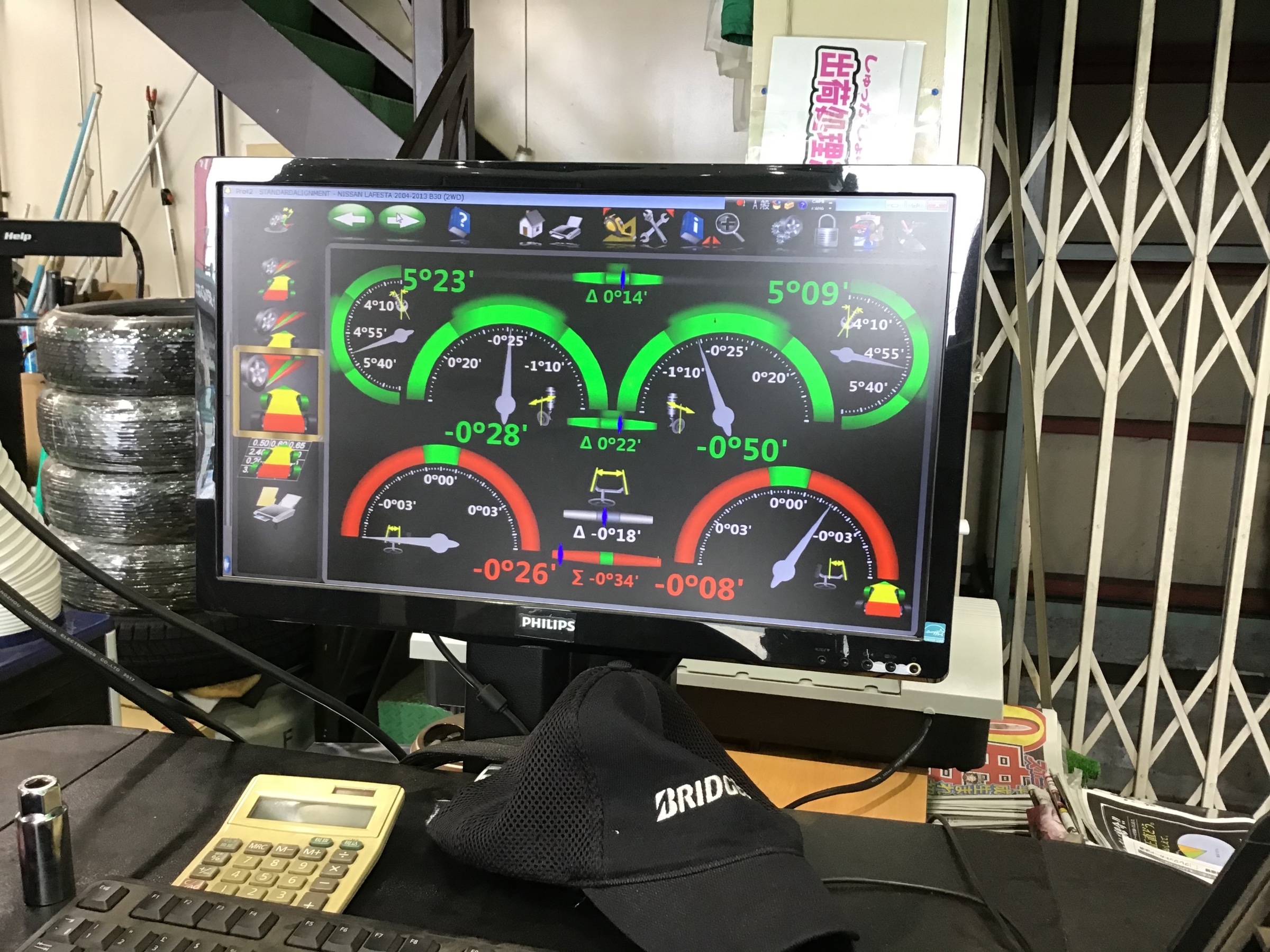 車にはそれぞれ適正値があり、測定の結果が赤く表示されると適正値から