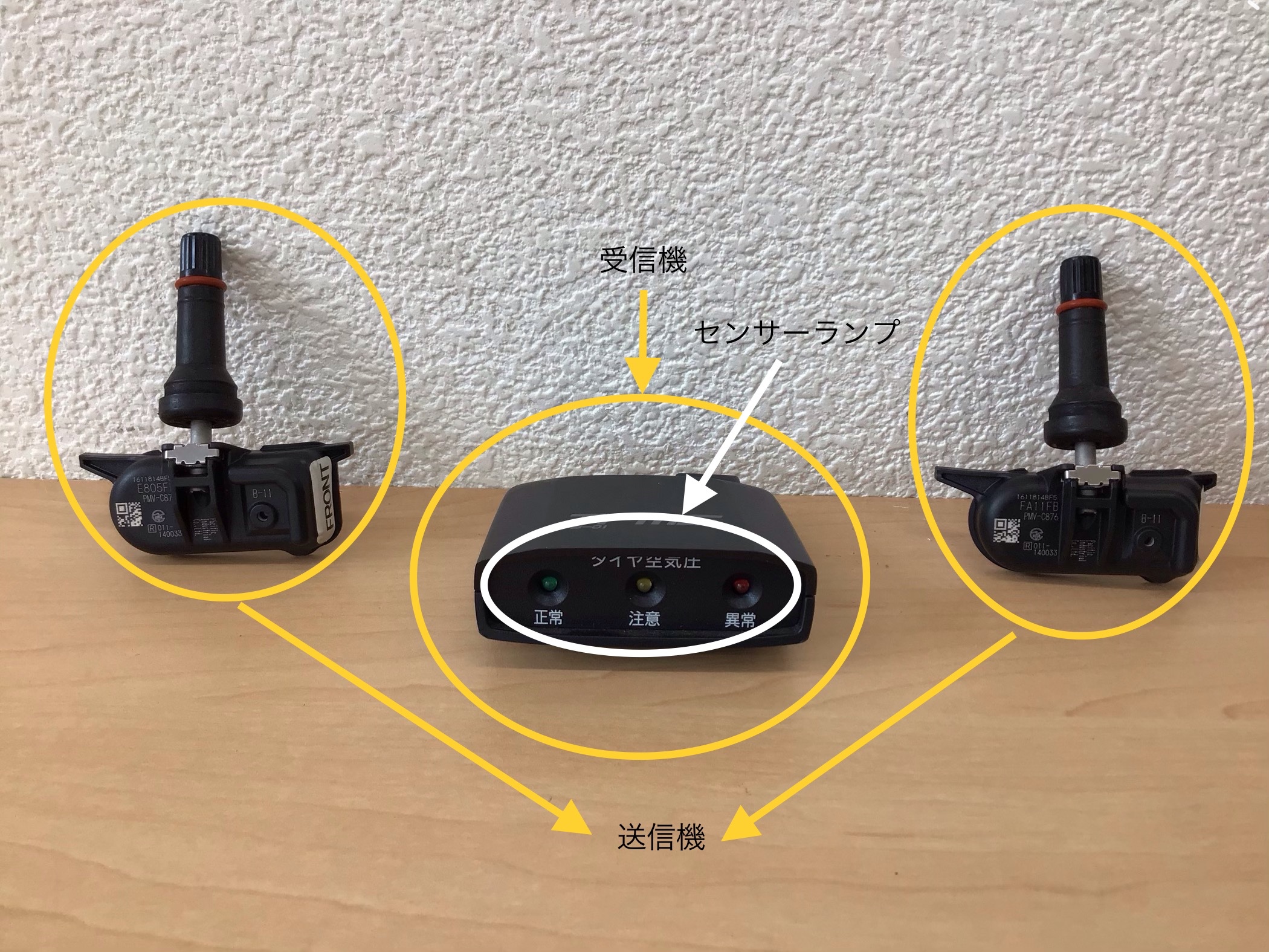 こちらで送信機に空気圧の低下を伝達します。