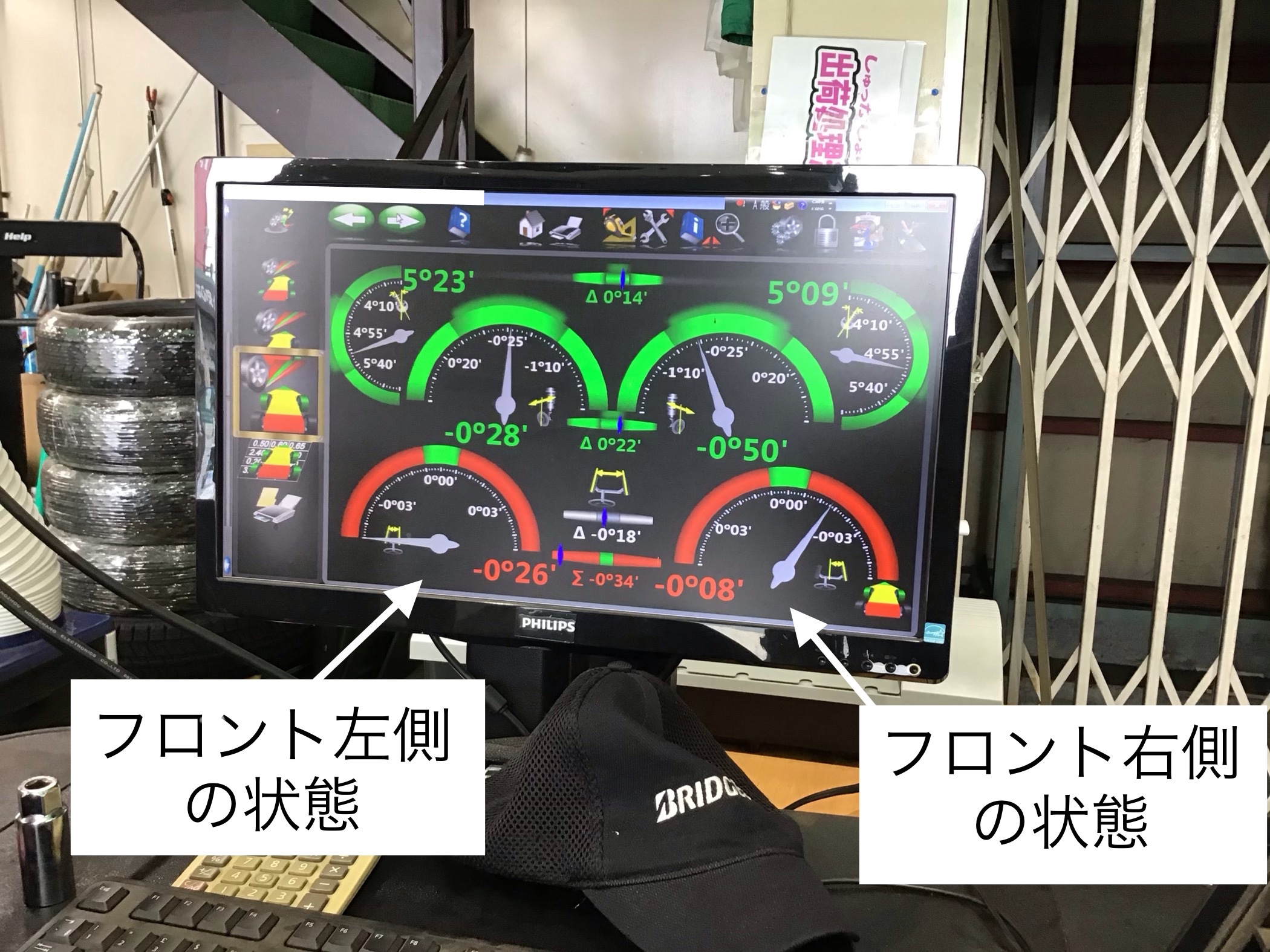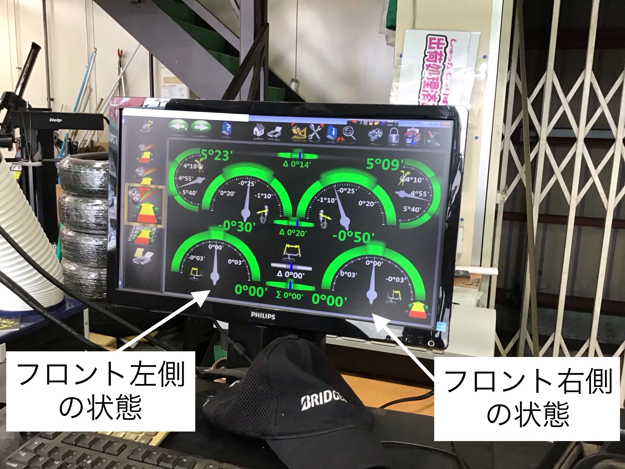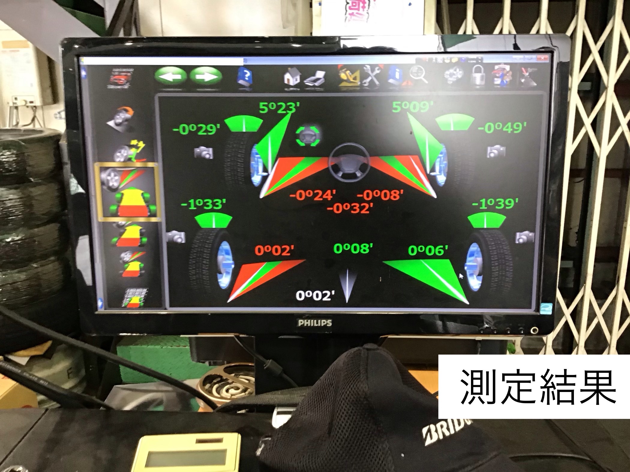 見た目では判断できない事が多い為、アライメント測定器でズレているか