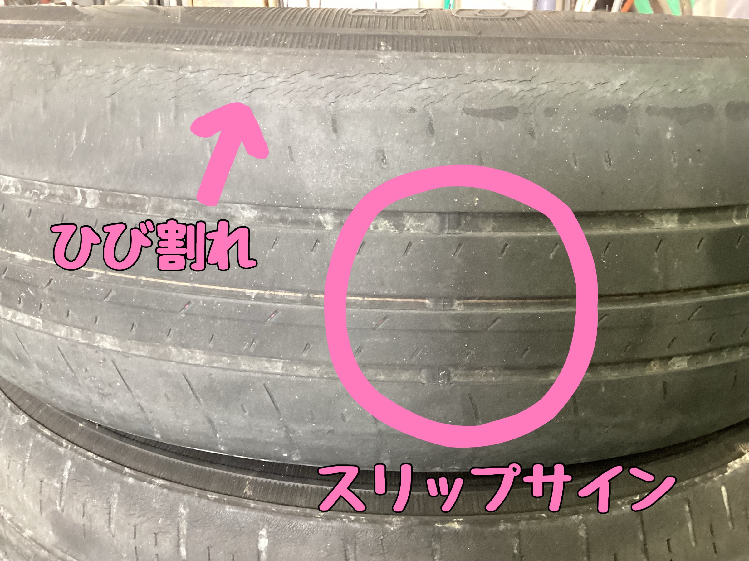 剥がしたタイヤです。側面のひび割れが目立ち 溝も少なかった為