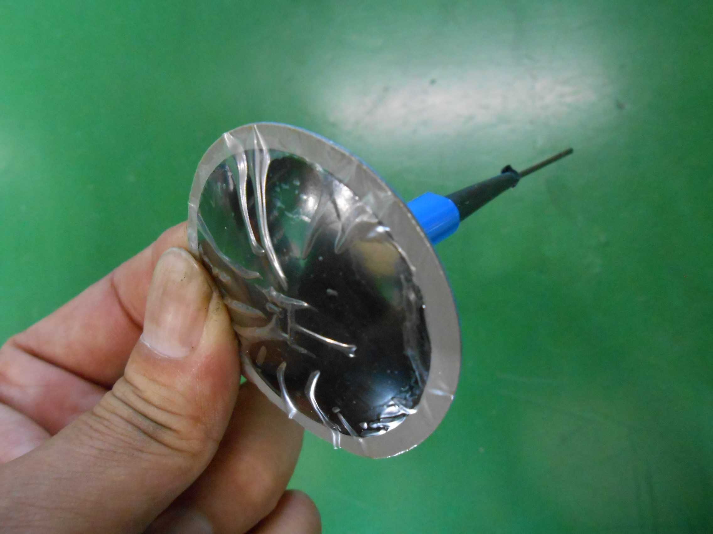 6)修理剤の先端が入るように拡張した部分に内側から写真のように挿入します。
