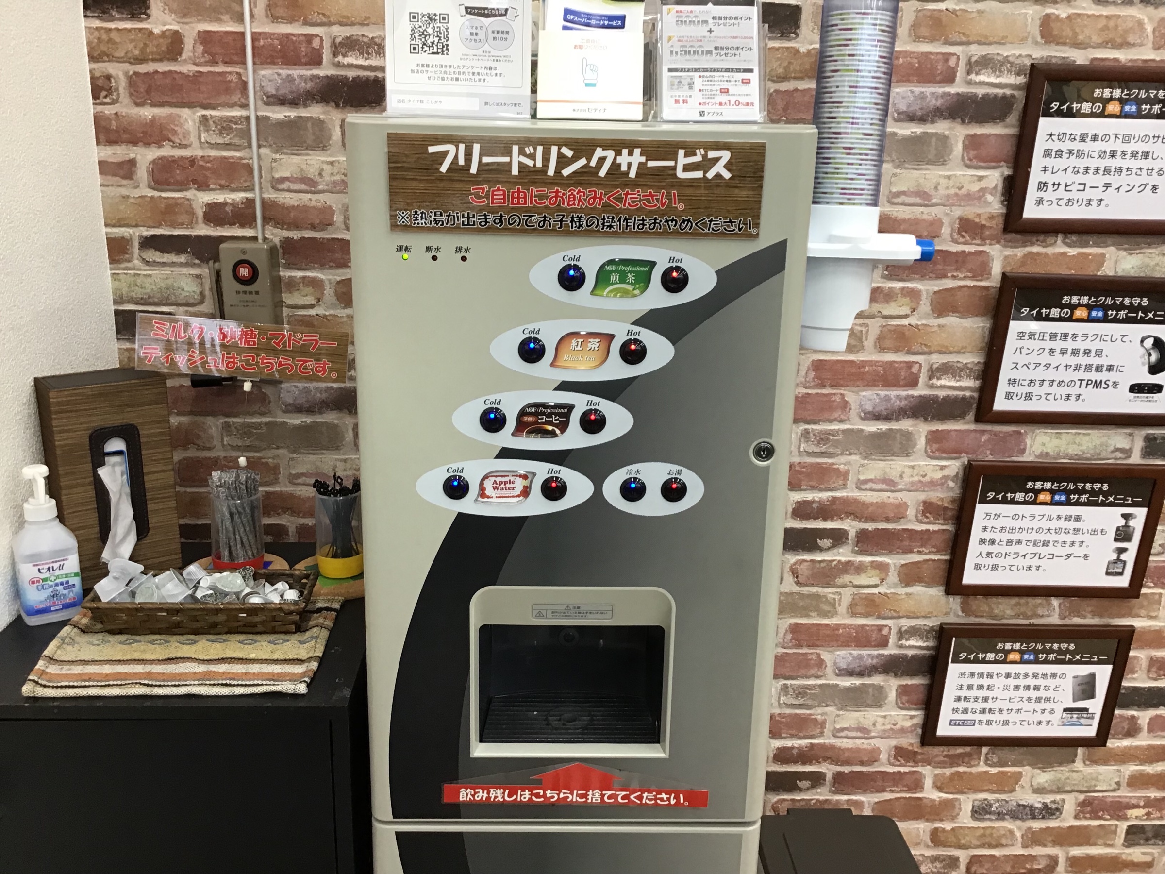 元気に営業してます! ポスト 2019年10月29日 みなさんこんにちは! 本日はあいにくの雨で、外出を控えている方もいらっしゃると思います。 当店ではあいにくの天気ですが、元気に営業させていただいております。 是非当店にご来店くださいませ! 空気圧点検のみでも構いません。 お待ちの間はあったかい飲み物もございます。 みなさまのご来店お待ちしております。 担当:大野