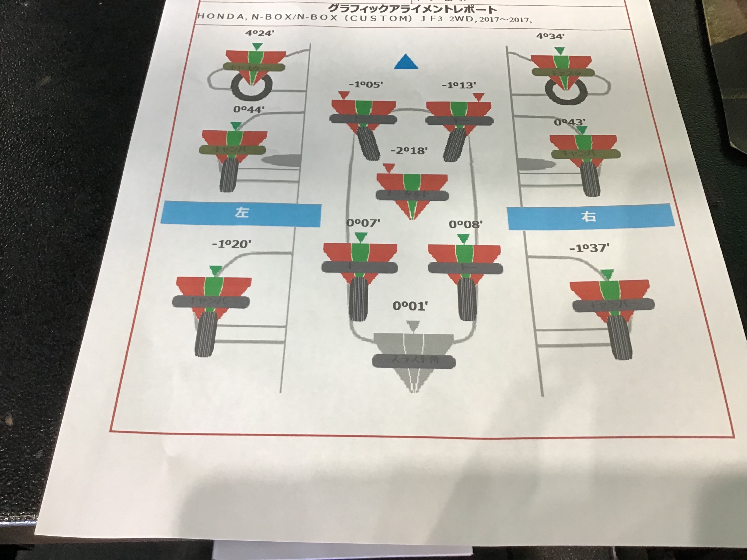 N-BOXアライメント! ポスト 2019年11月5日 みなさんこんにちは! 今回はN-BOXのアライメントのご紹介です。 お客様からタイヤの内側の減りが早いとのことでアライメントを実施! 測定してみると・・・! タイヤが外向き(ガニ股)になっていました。これでは内側が減ってしまうのは 至極当然な結果ですね。 そして調整! これで内側の減りを抑制できますね。試乗の結果も異常なしです。 ご来店頂きありがとうございます。 担当:大野