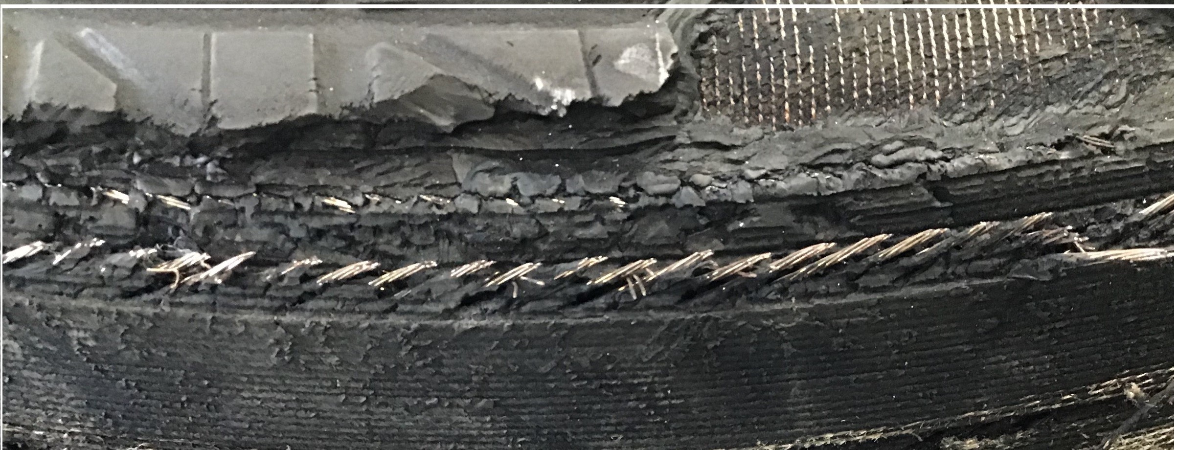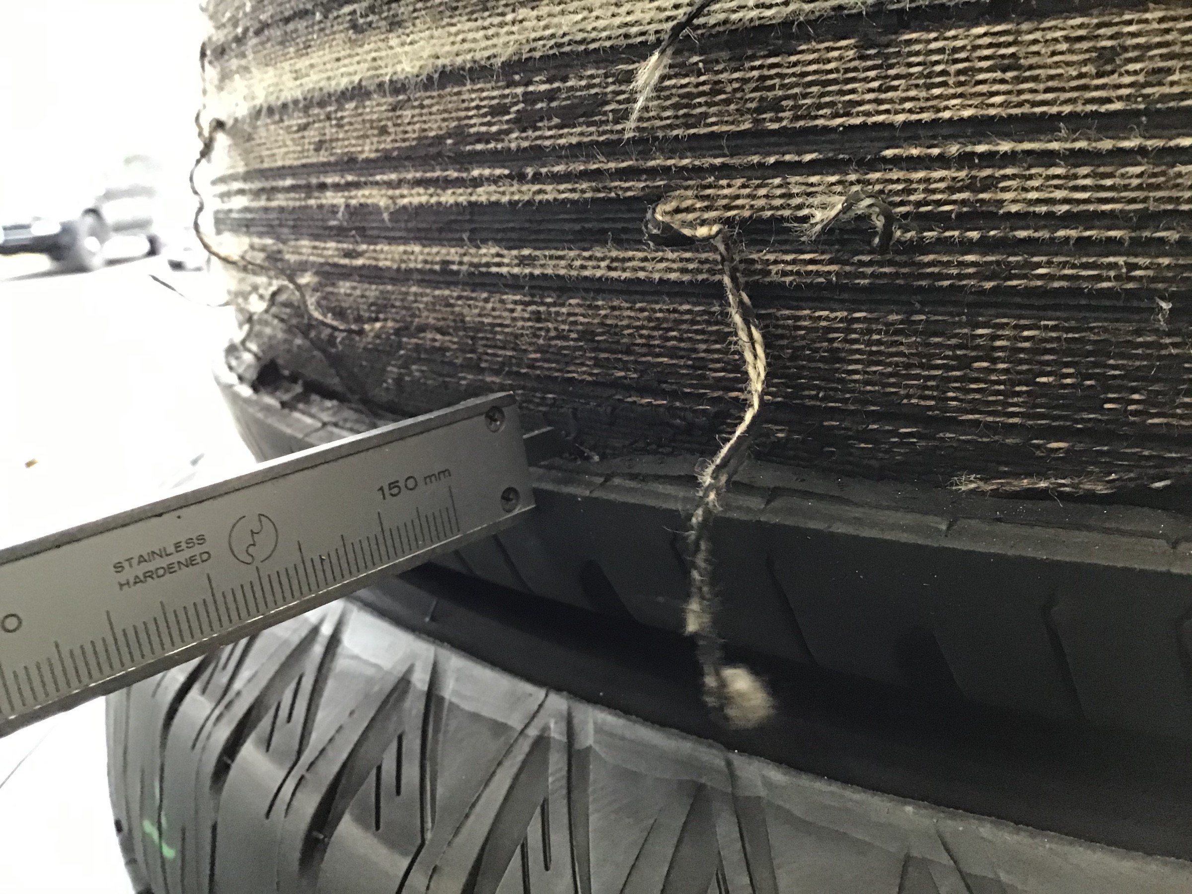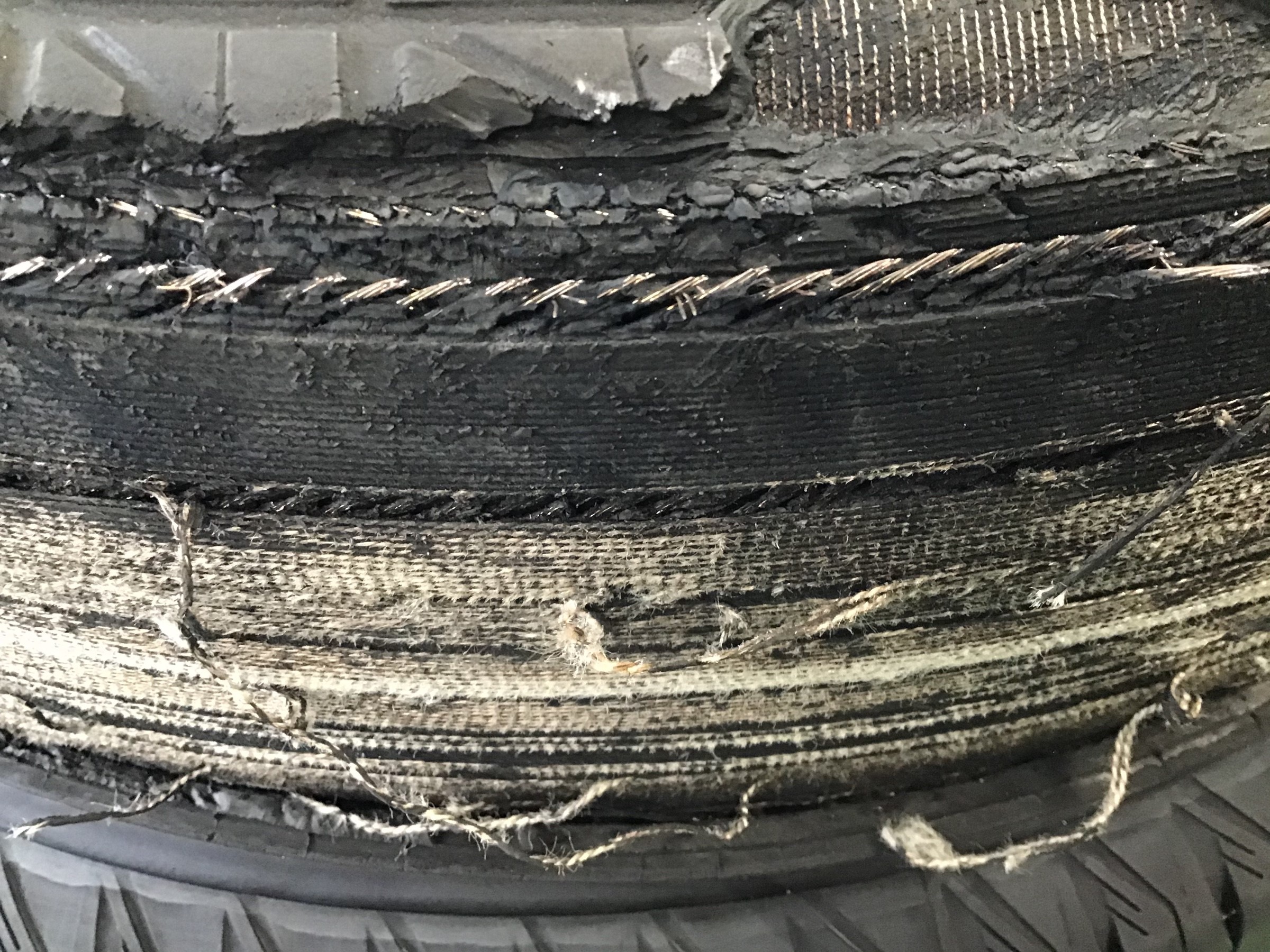 見事にタイヤの表面が無くなって(弾けて?)いますね( ;∀;)