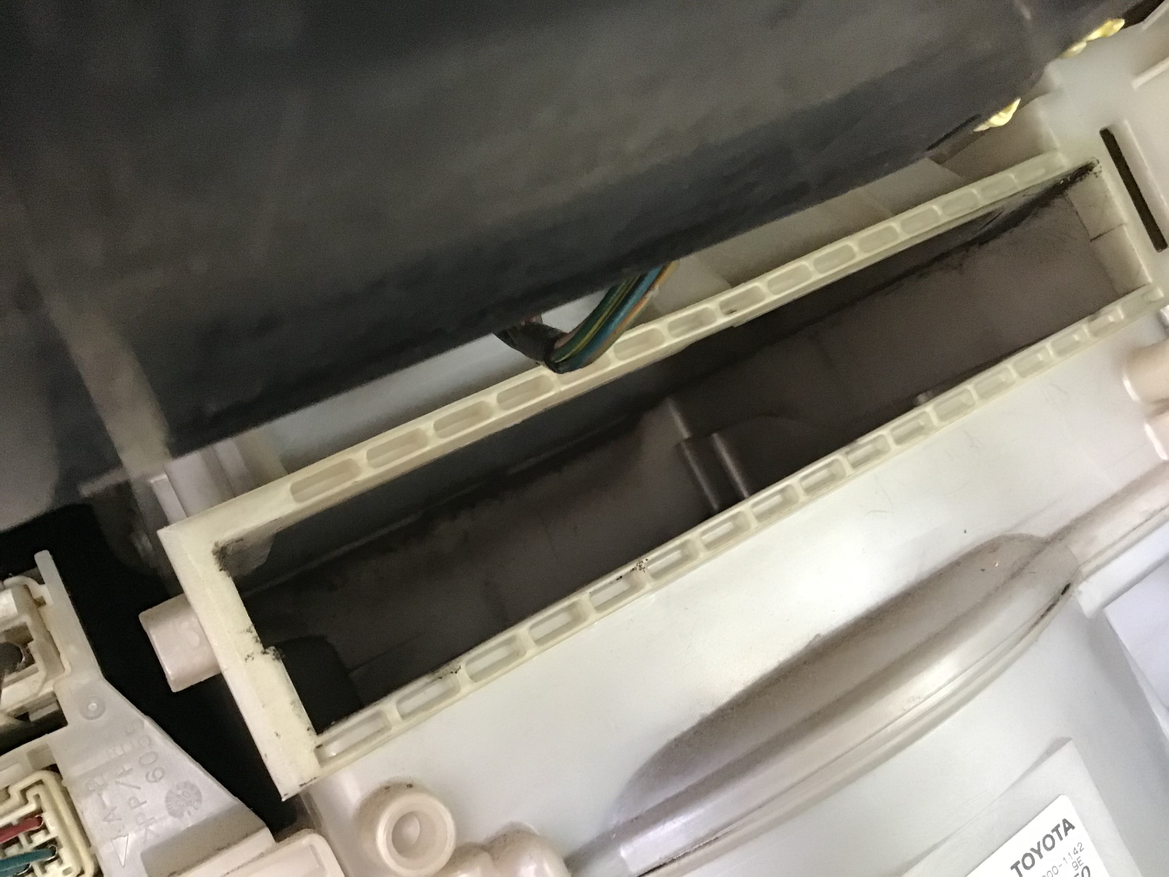 ダッシュボードの裏側にこちらのお車はあります。 では外します。