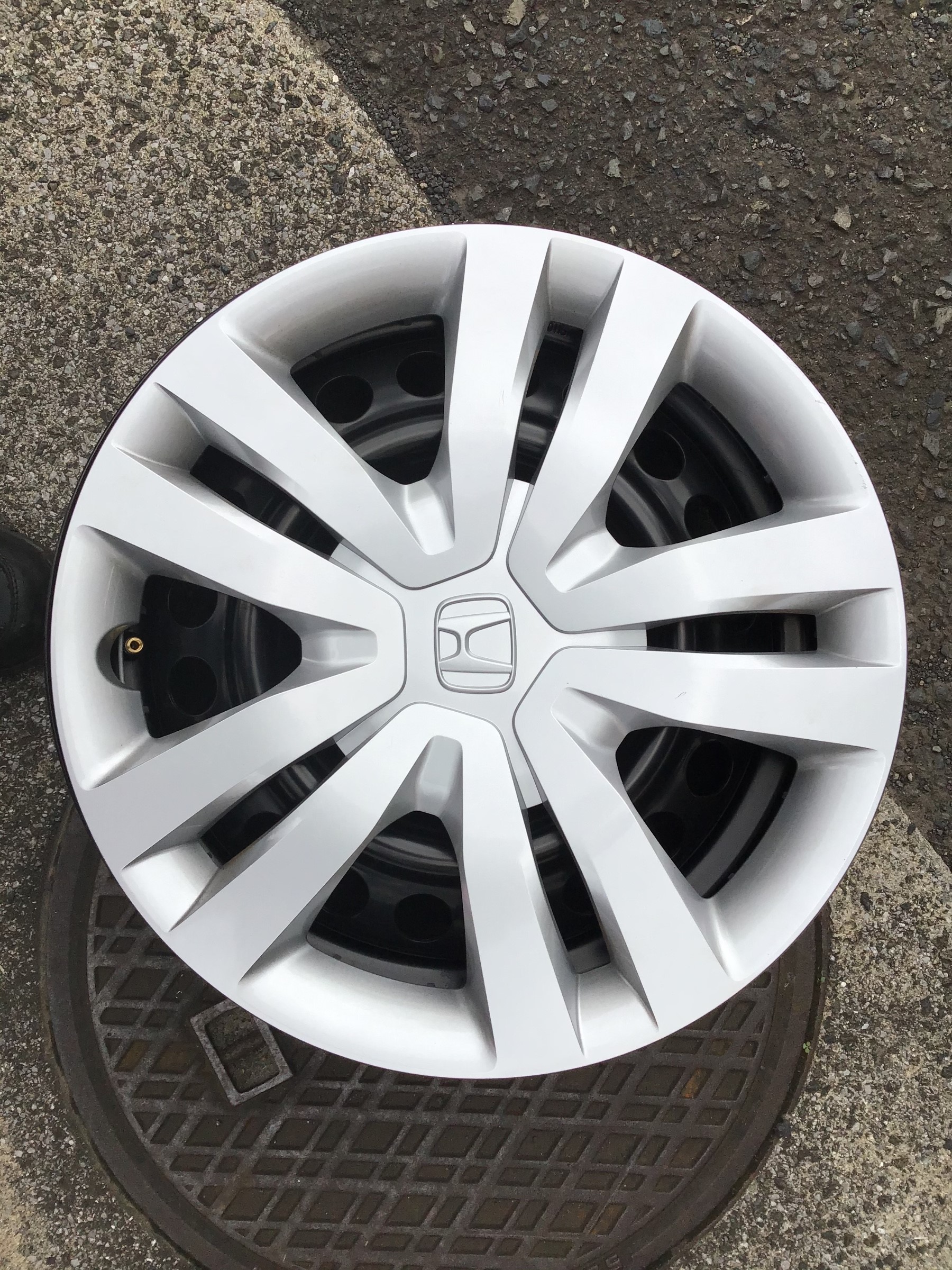 元のホイールはスチール(鉄)製のものにプラスチックのホイールカバーが付いているタイプです。