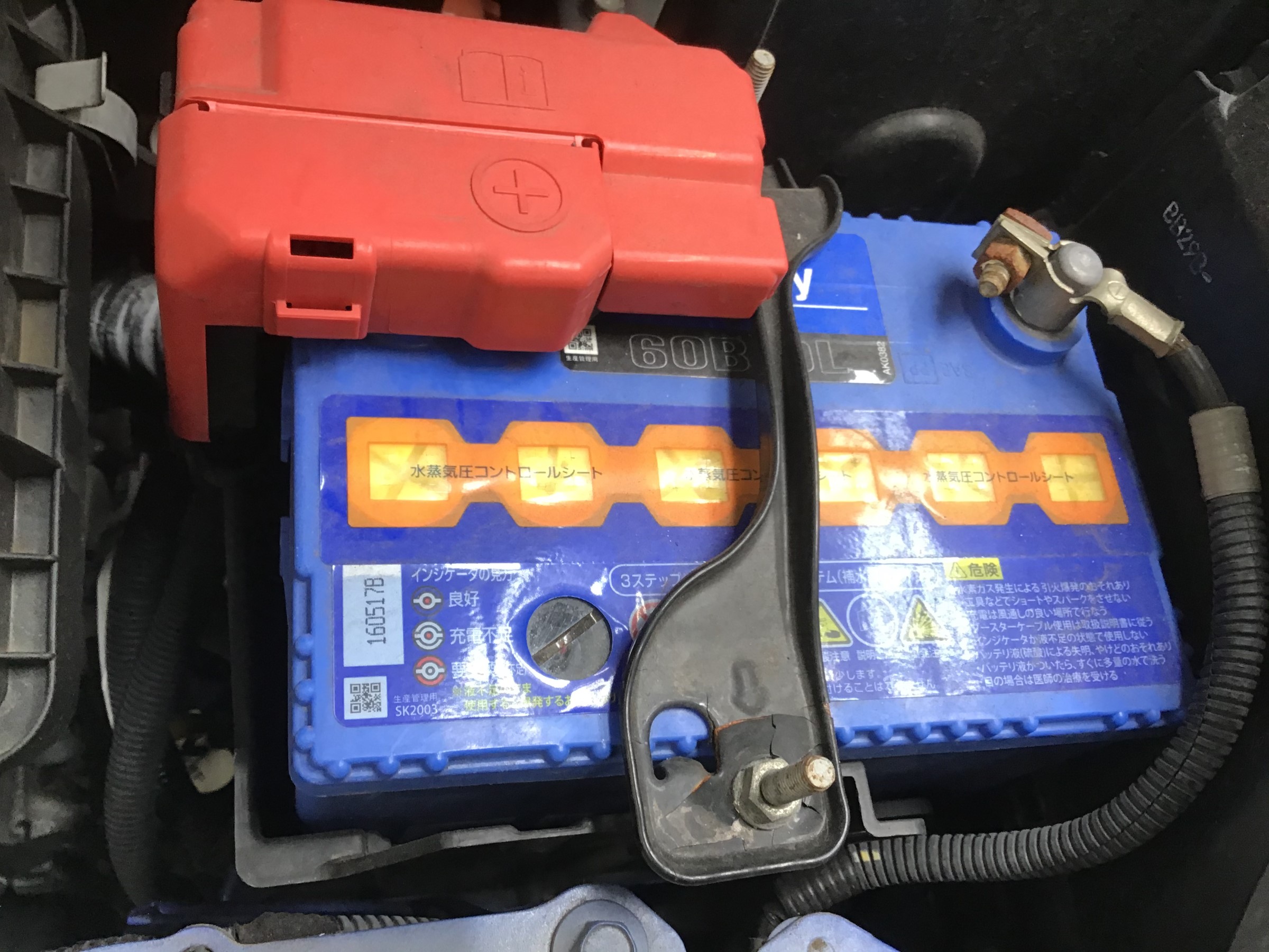 ワイパー交換とエンジンオイル交換も終わりバッテリー交換を始めます。
