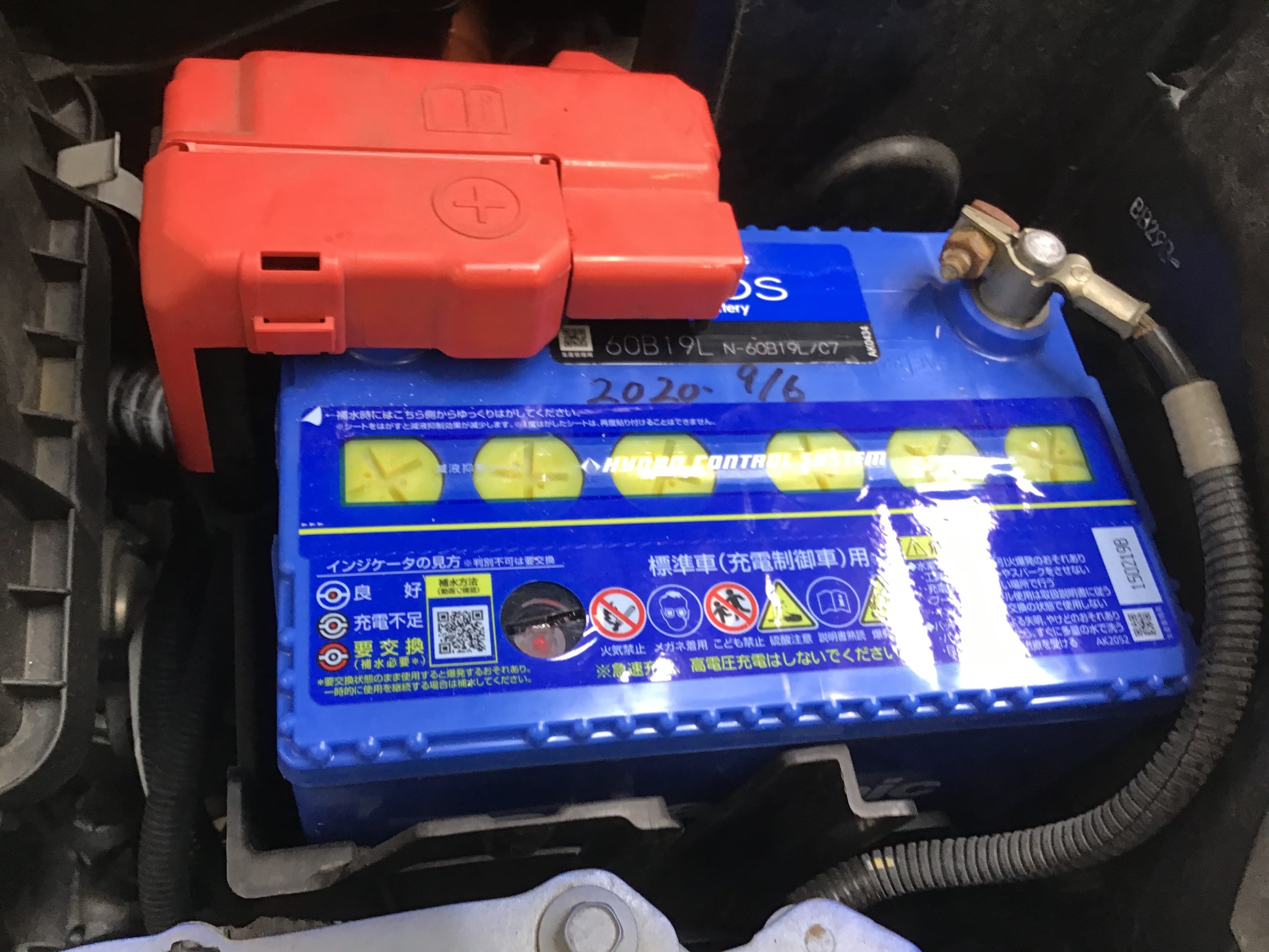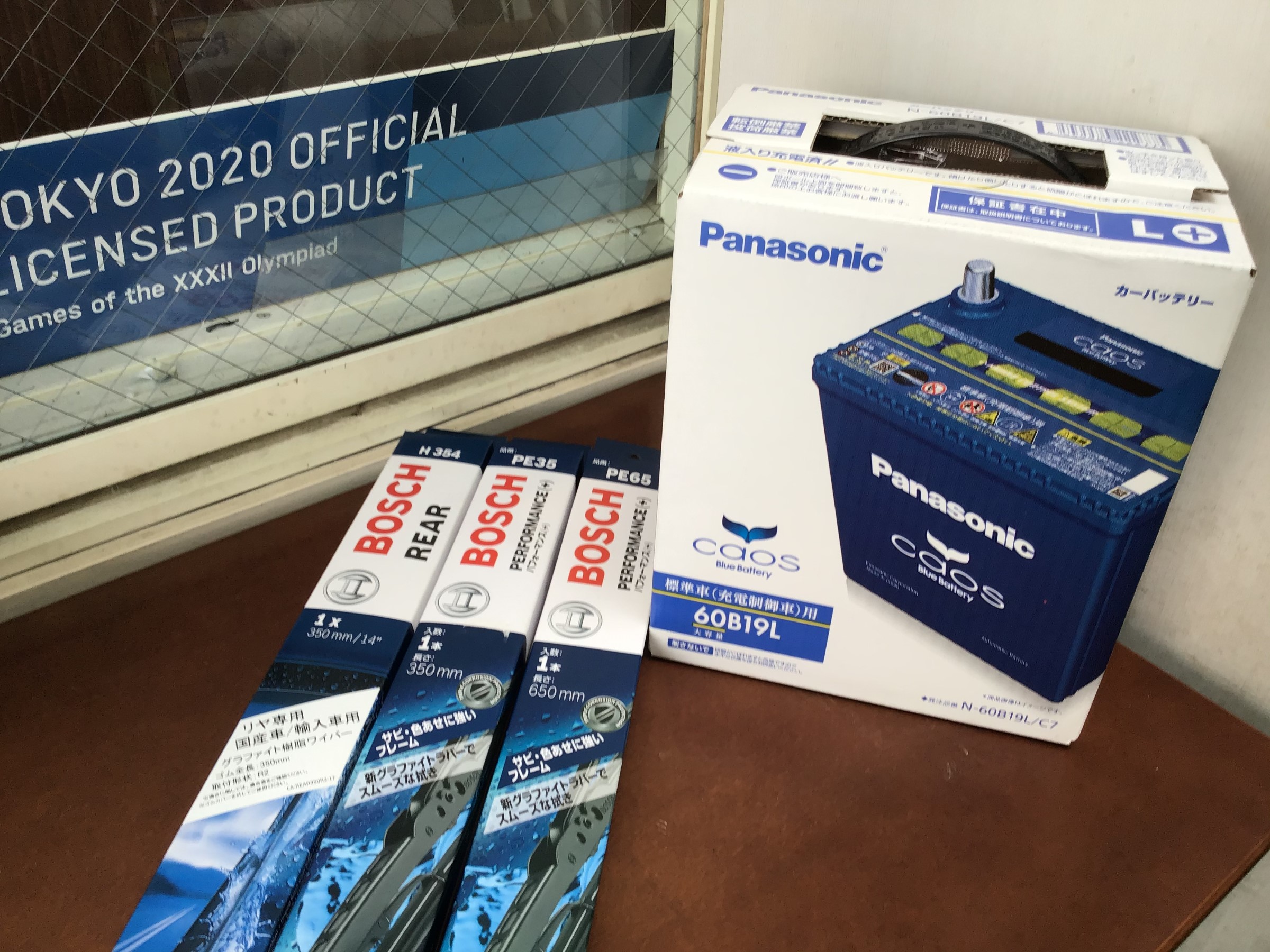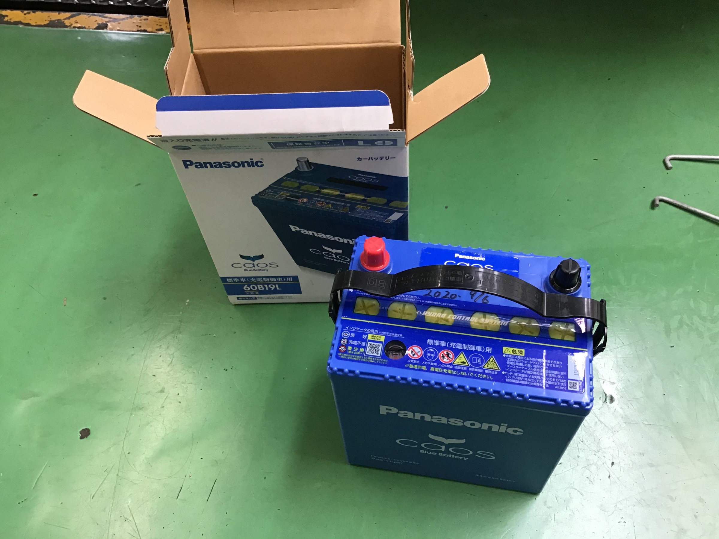 バッテリーは パナソニック製 カオス 60B19Lサイズ こちらに交換し、ワイパー前、後と