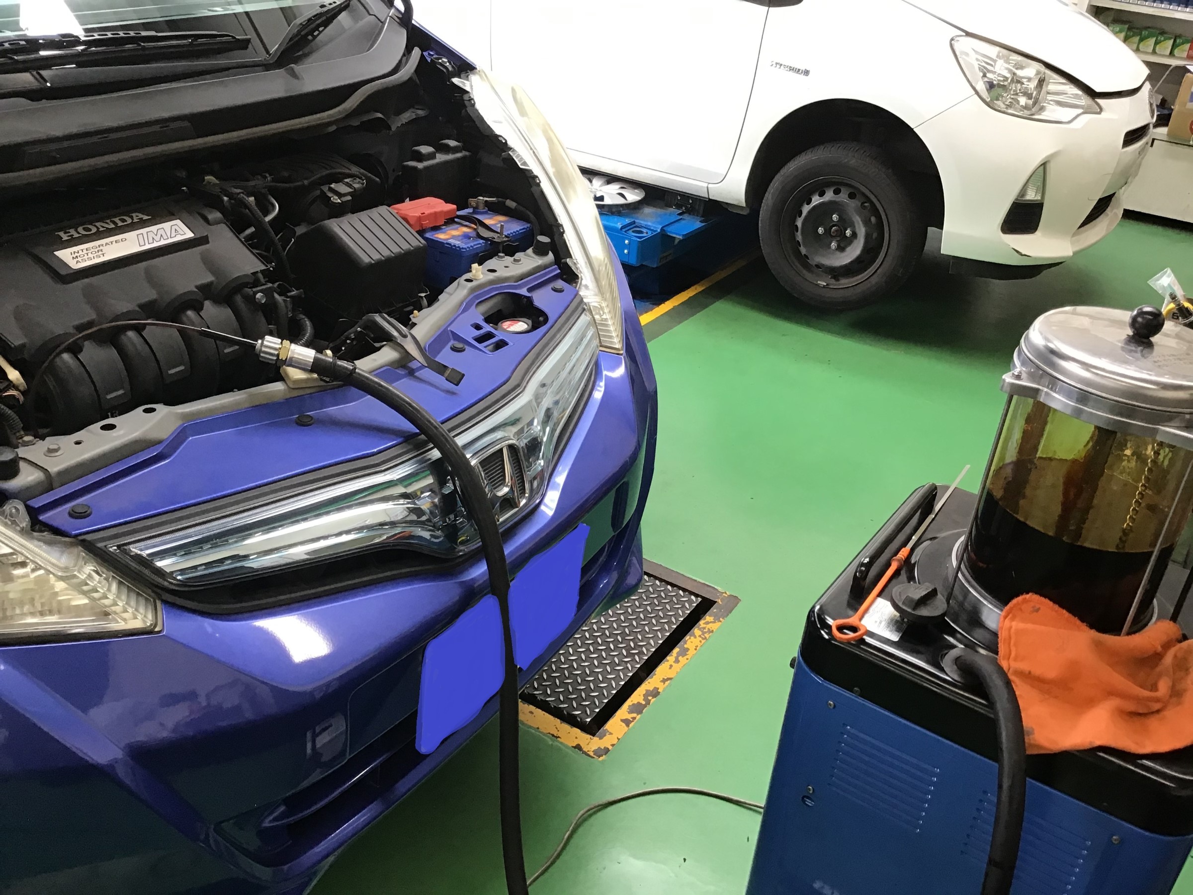 (奥のアクアはタイヤ交換とエンジンオイル交換です。)