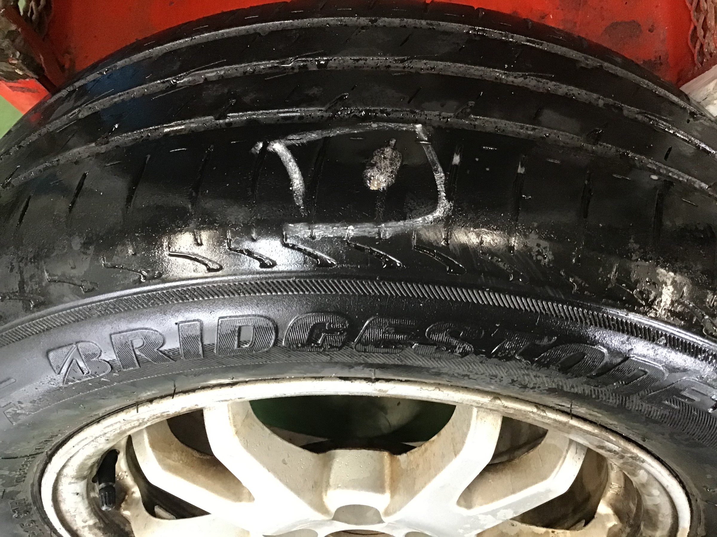 スペアタイヤがあってなりよりです。 パンク箇所がかなり横にある事とひび割れ、残溝も3ミリ