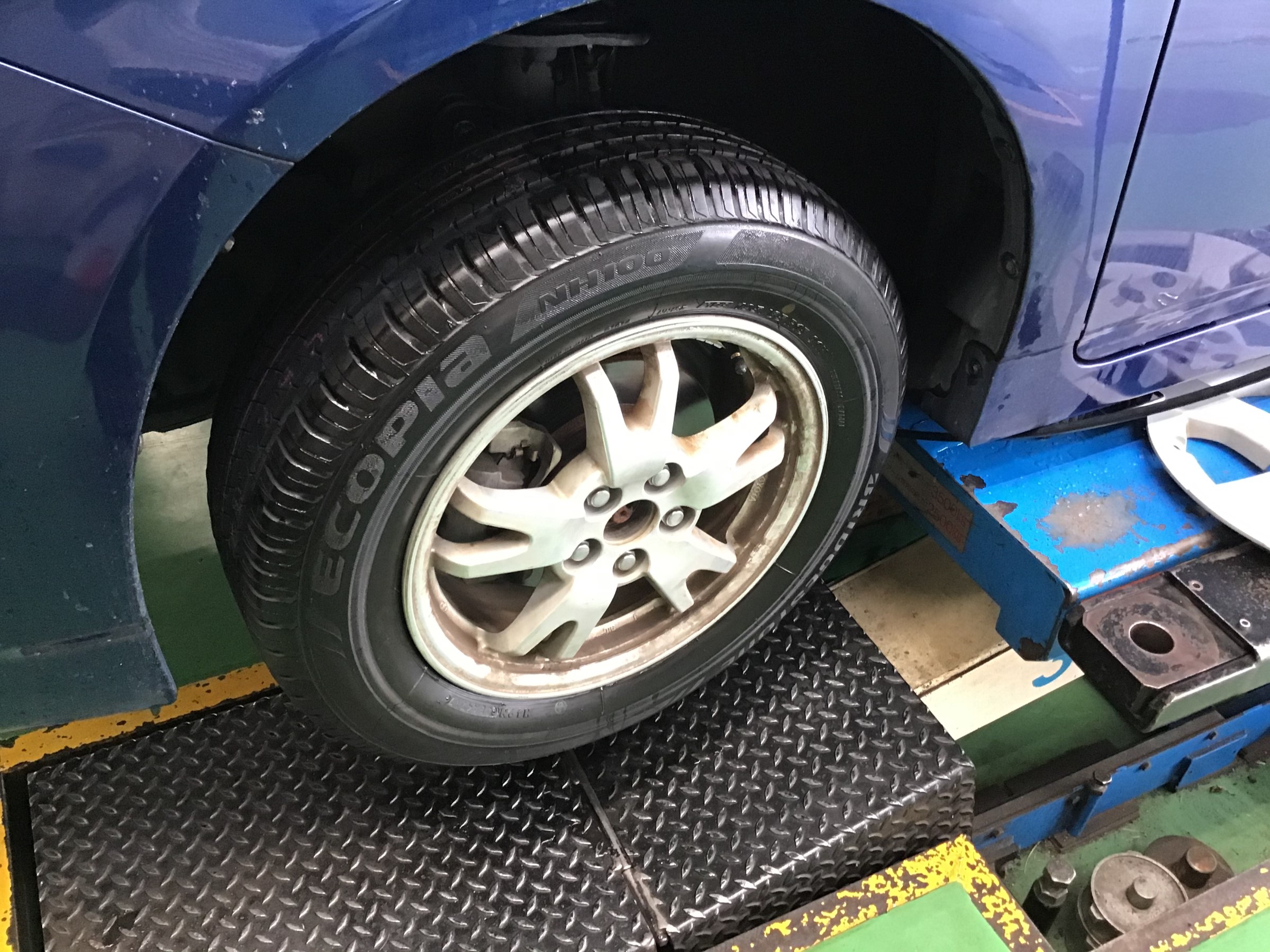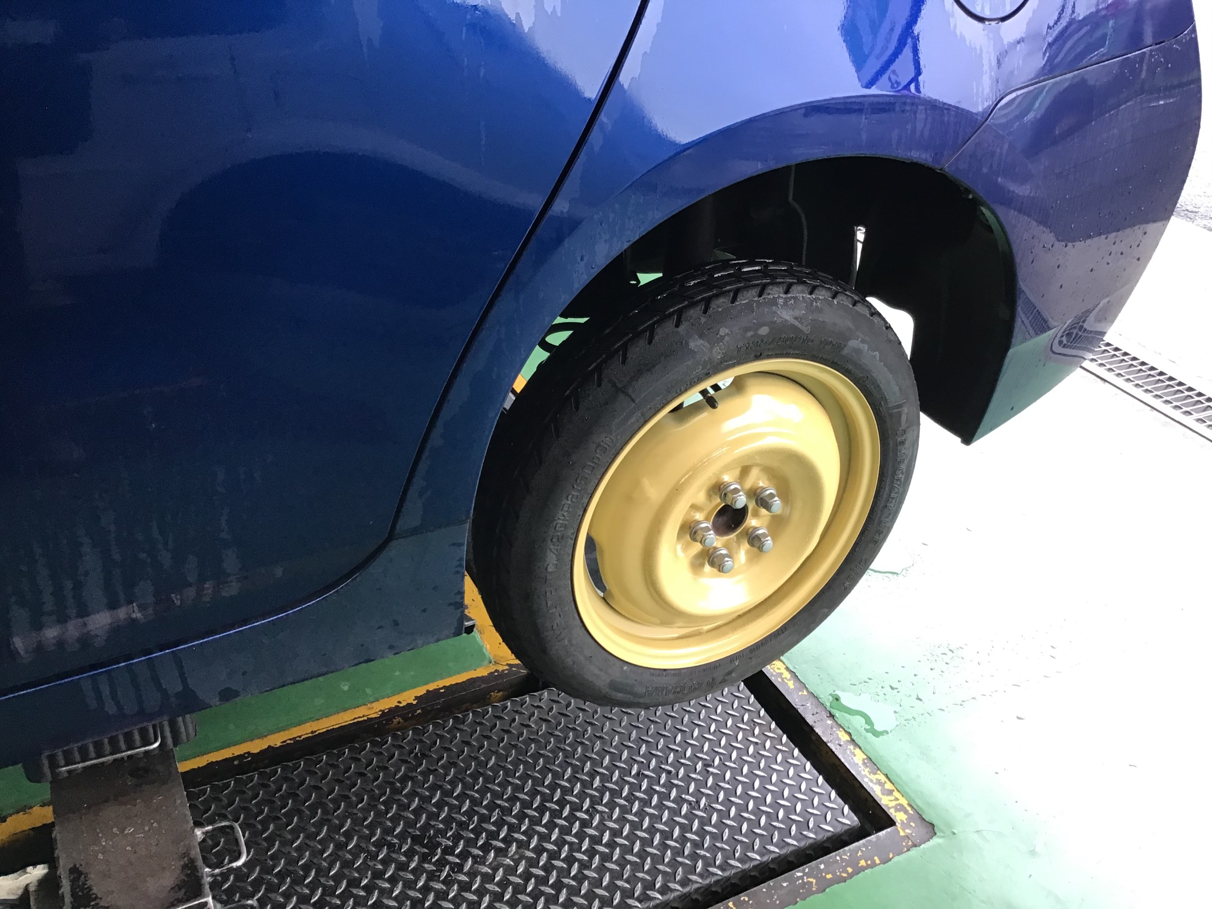 スペアタイヤの空気圧調整も忘れずに行い、タイヤの取り付けです。