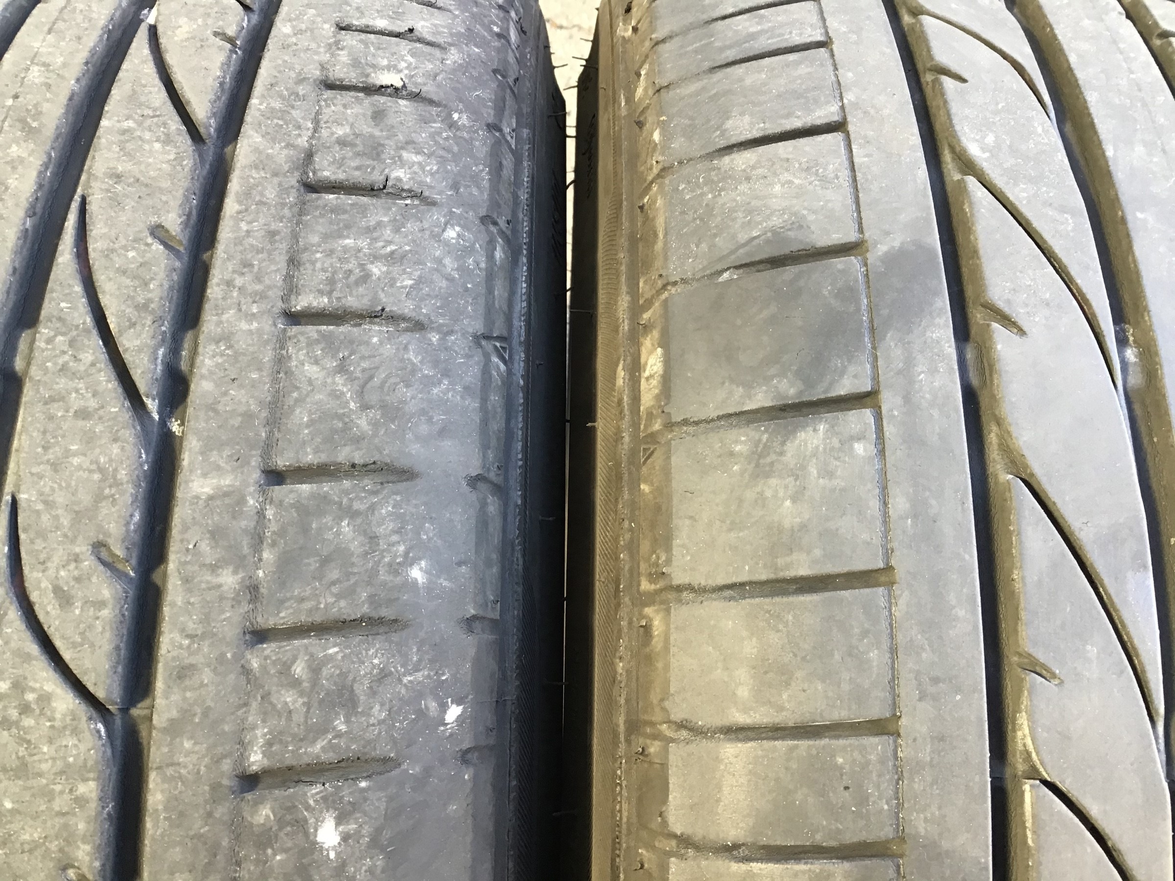 のタイヤですが、フロントタイヤの内側がリアよりも削れています。