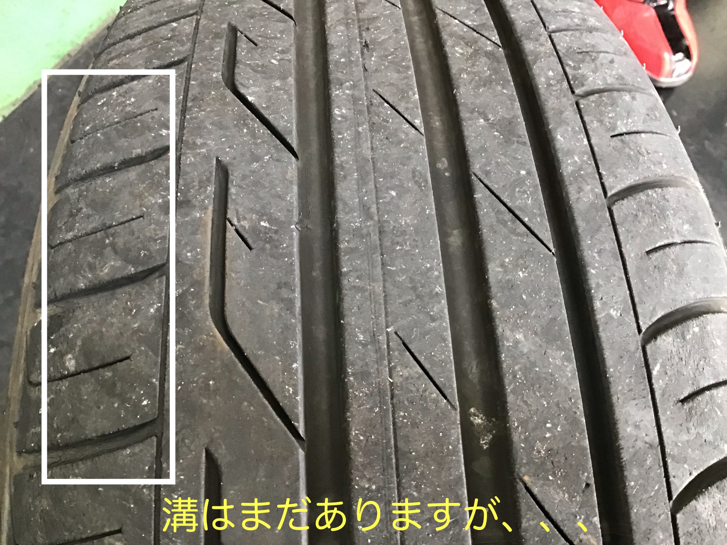 溝はまだまだありそうですが、ショルダー部(サイドとと接地面の中間)のひび割れが気になりますね。