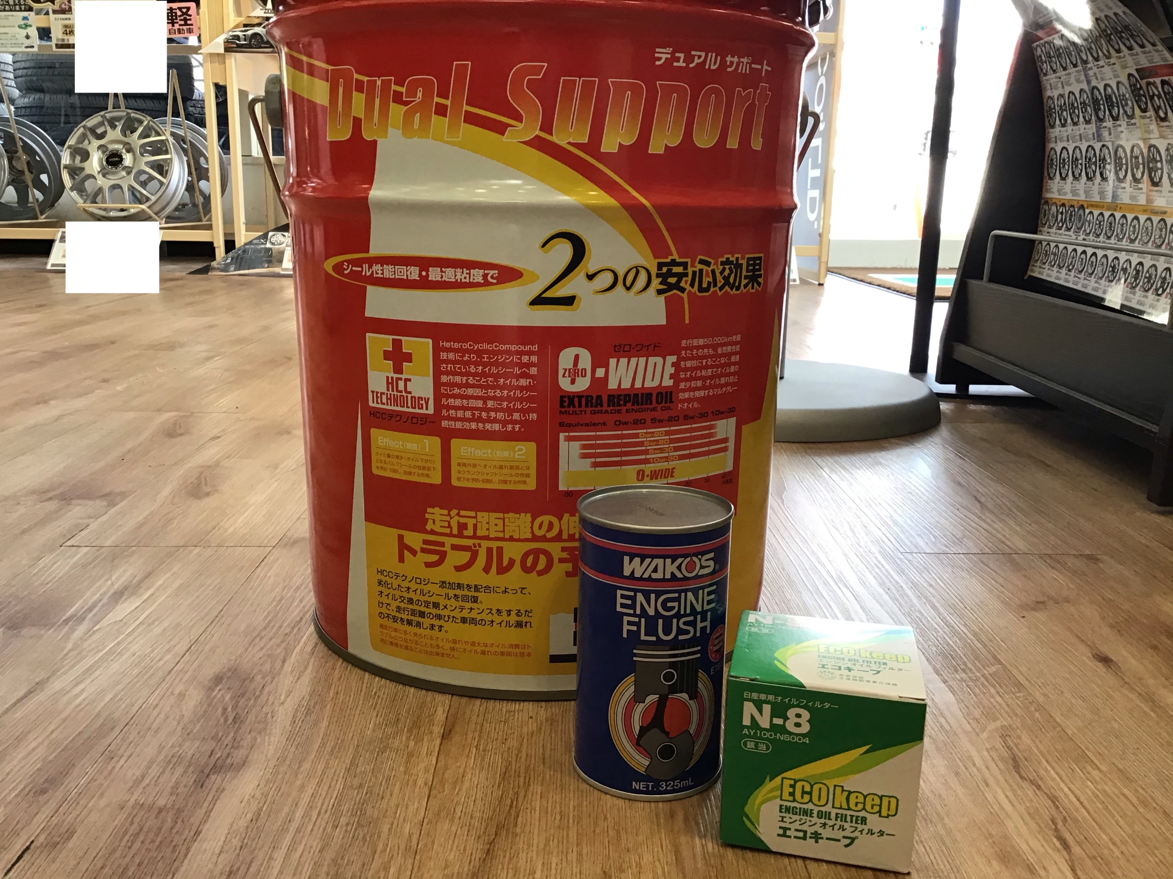 オイルは当店でお手頃なデュアルサポート3L+オイルフィルター+フラッシング(ワコーズ)