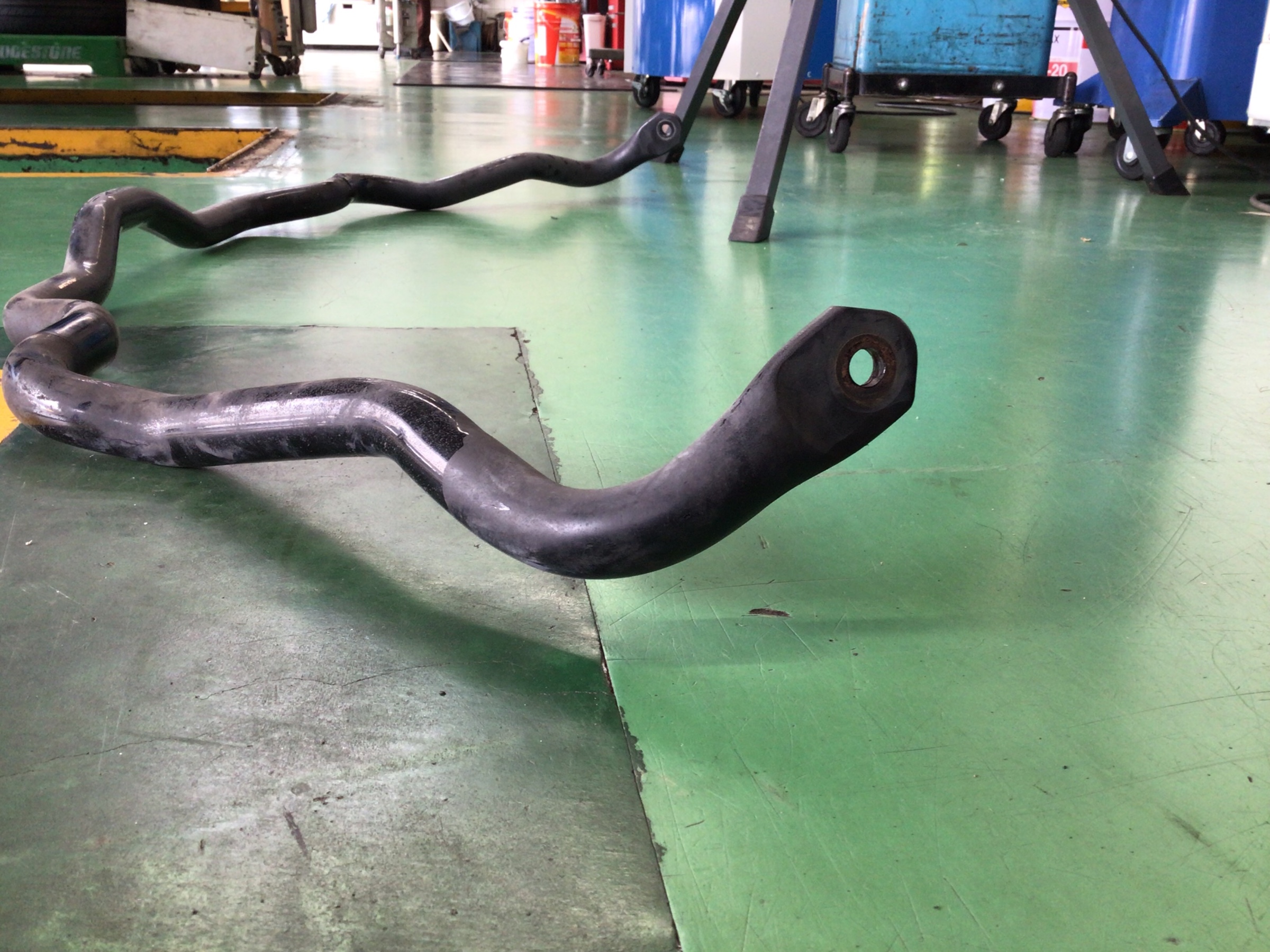 社外の強化品を取り付ける前に純正のスタビライザーを摘出していきます!