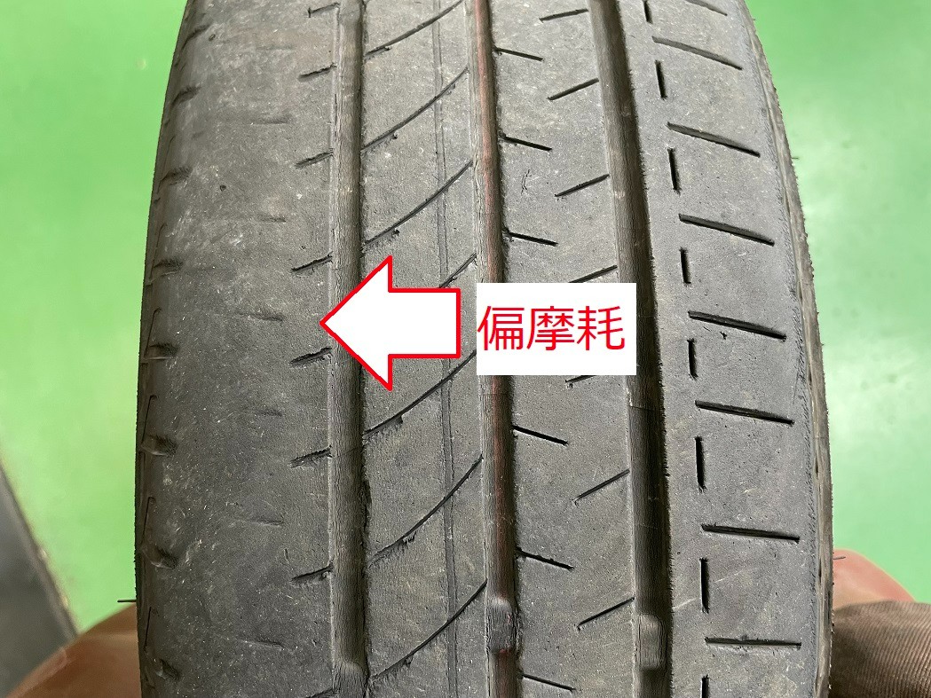 さっそくタイヤの点検をさせて頂いたら画像のように編摩耗が起きてました・・・