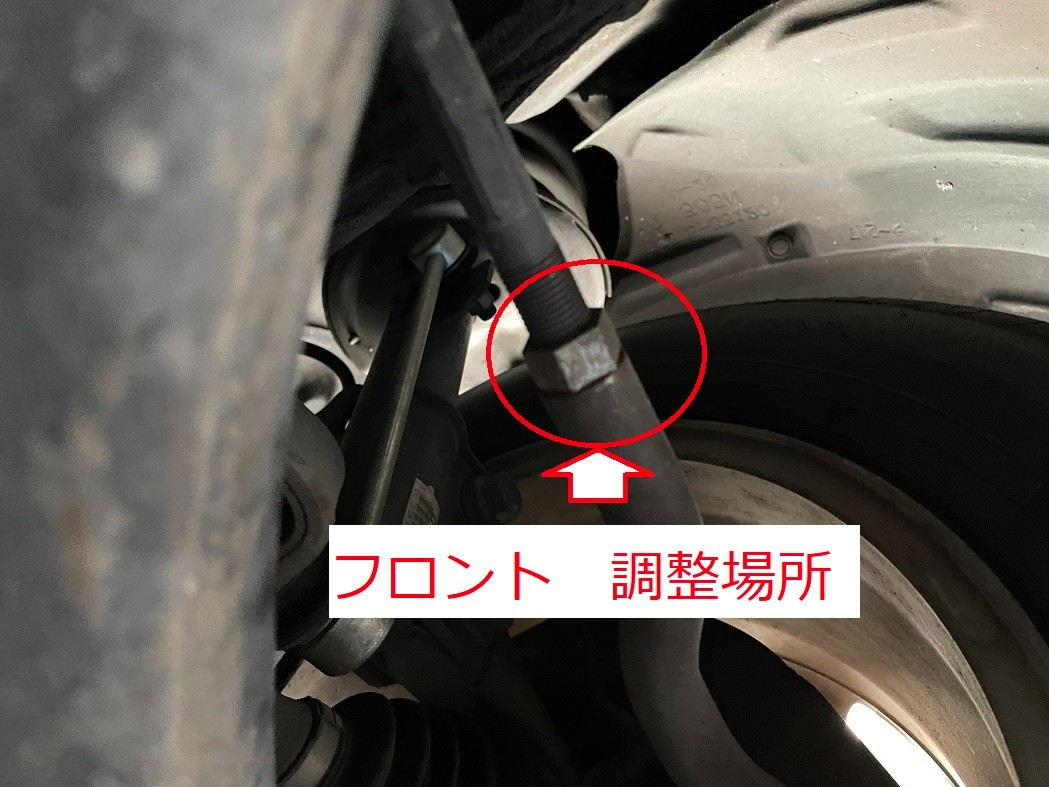 フロントタイヤも後ろと同じくタイロッドの伸び縮みで角度の調整をしていきます!
