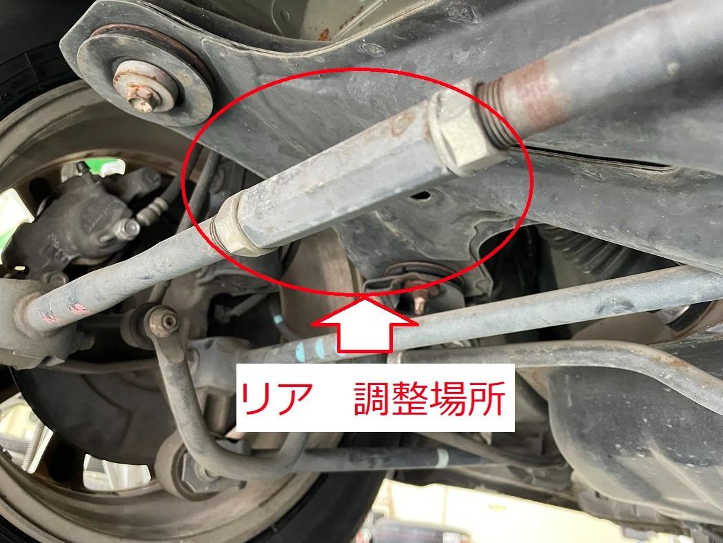 後ろの調整はタイロッドと言われる棒を伸ばしたり縮めたりする事で人間で言うところの内股・ガニ股にあたる角度を調整します!