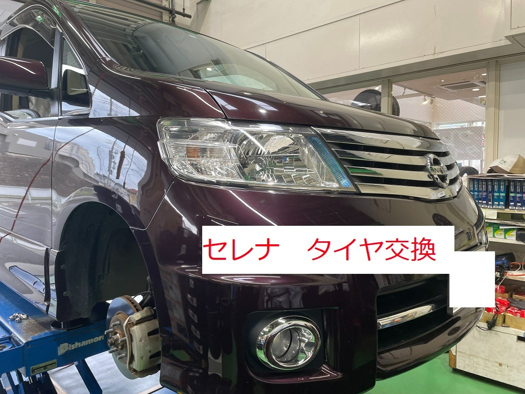 今日はセレナのタイヤ交換を実施します。