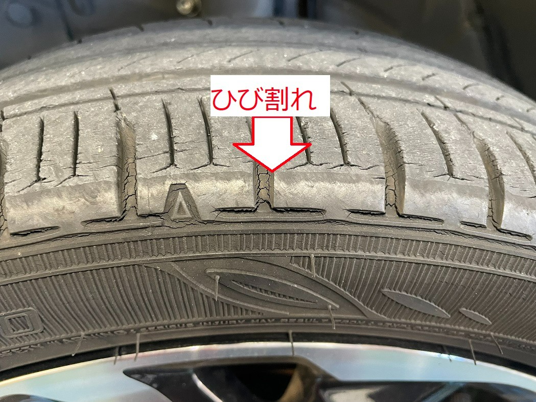 装着しているタイヤを見てみると劣化が進んでおりひび割れが起きています。