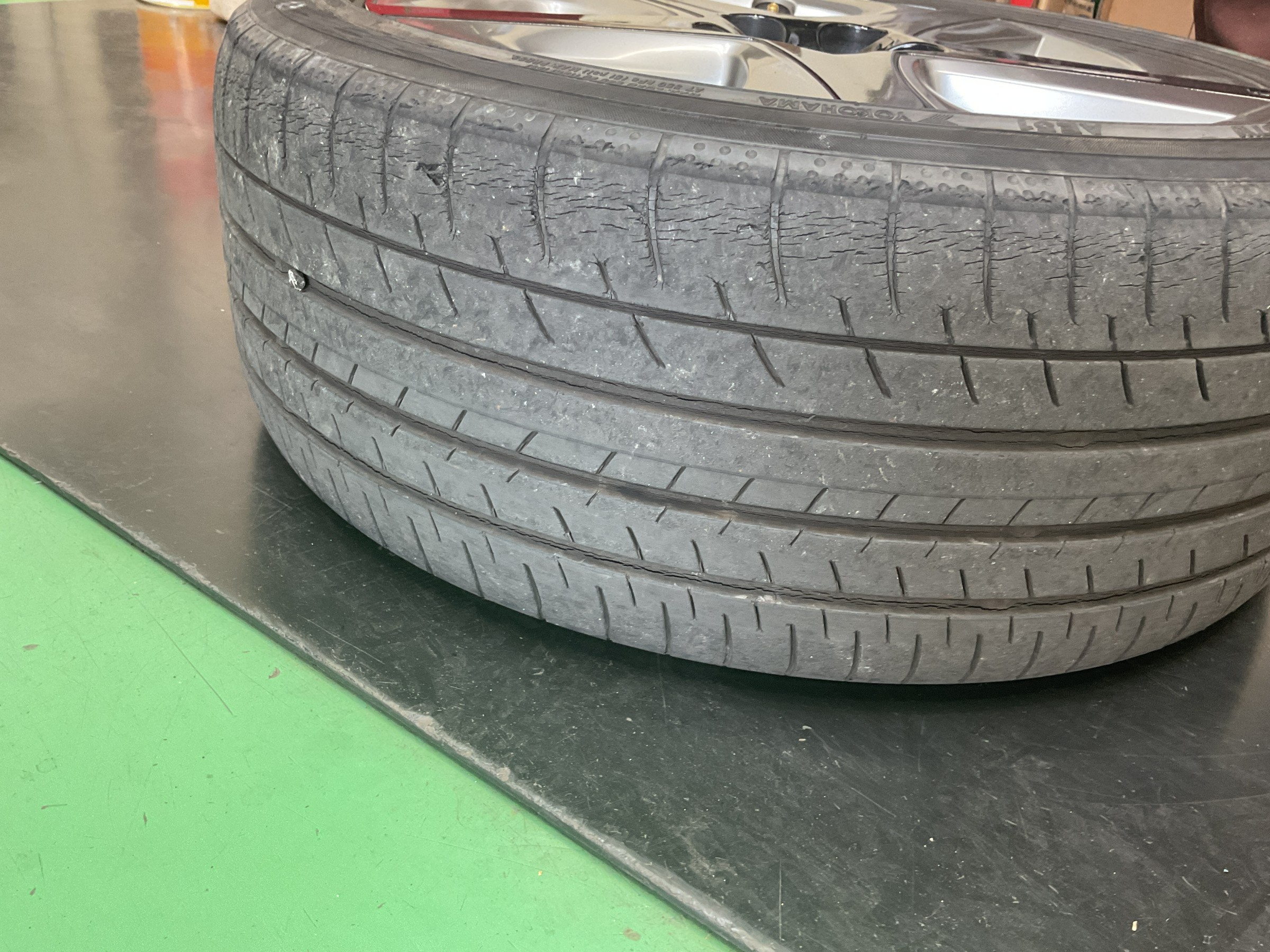 交換前のタイヤは溝も減ってきていますね。。