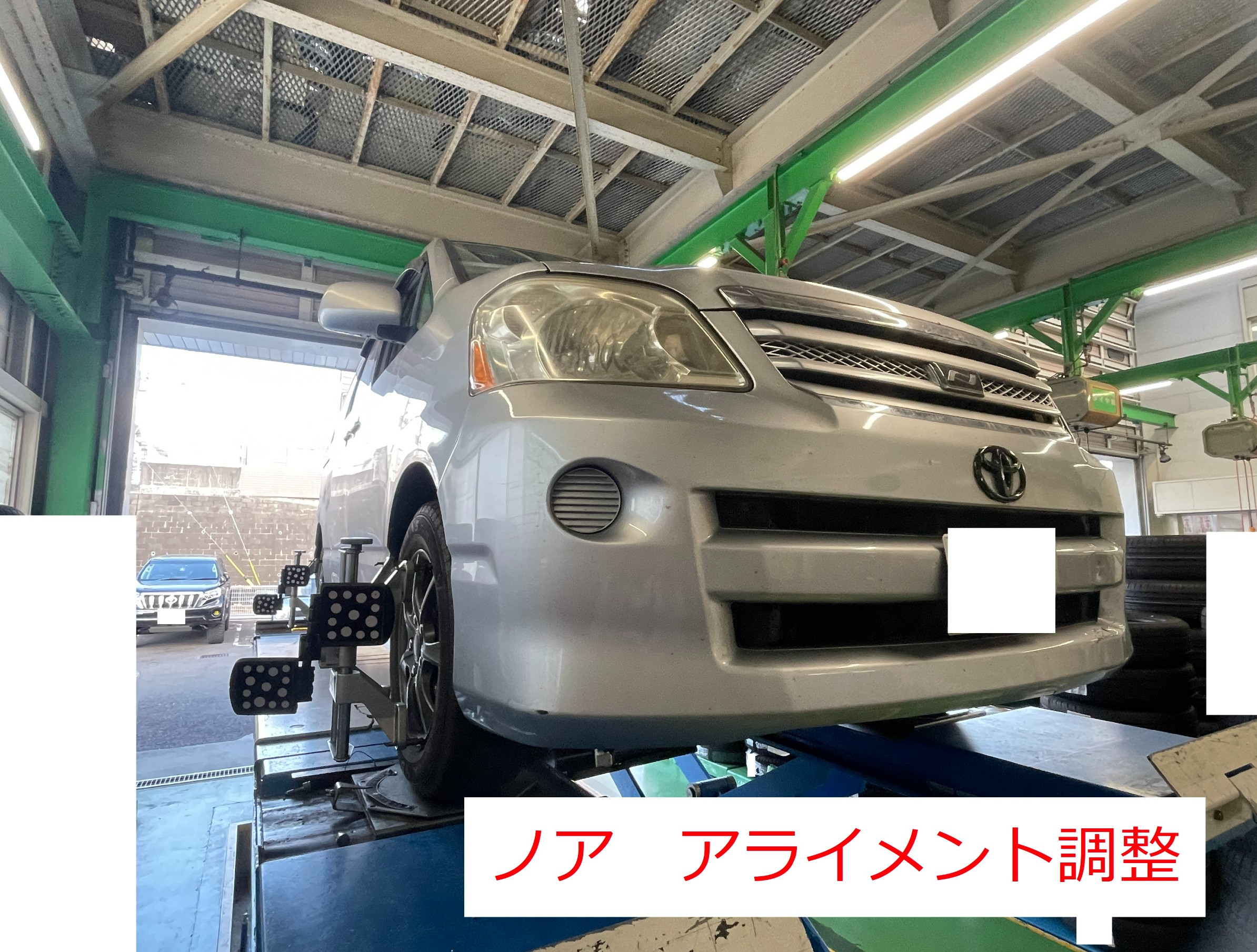 本日はTOYOTA・ノア(車両メーカー&車種)のアライメント作業をご紹介します。