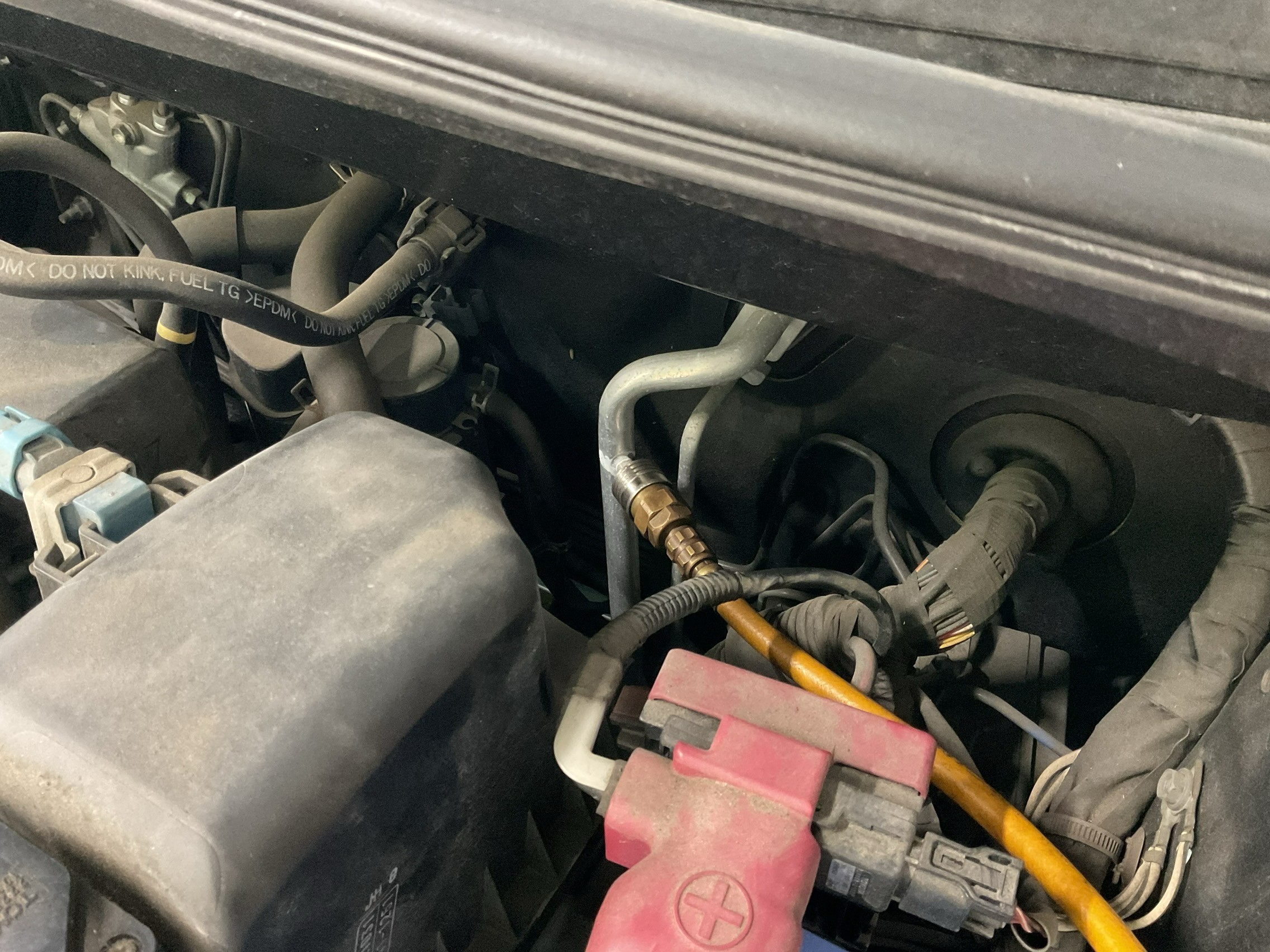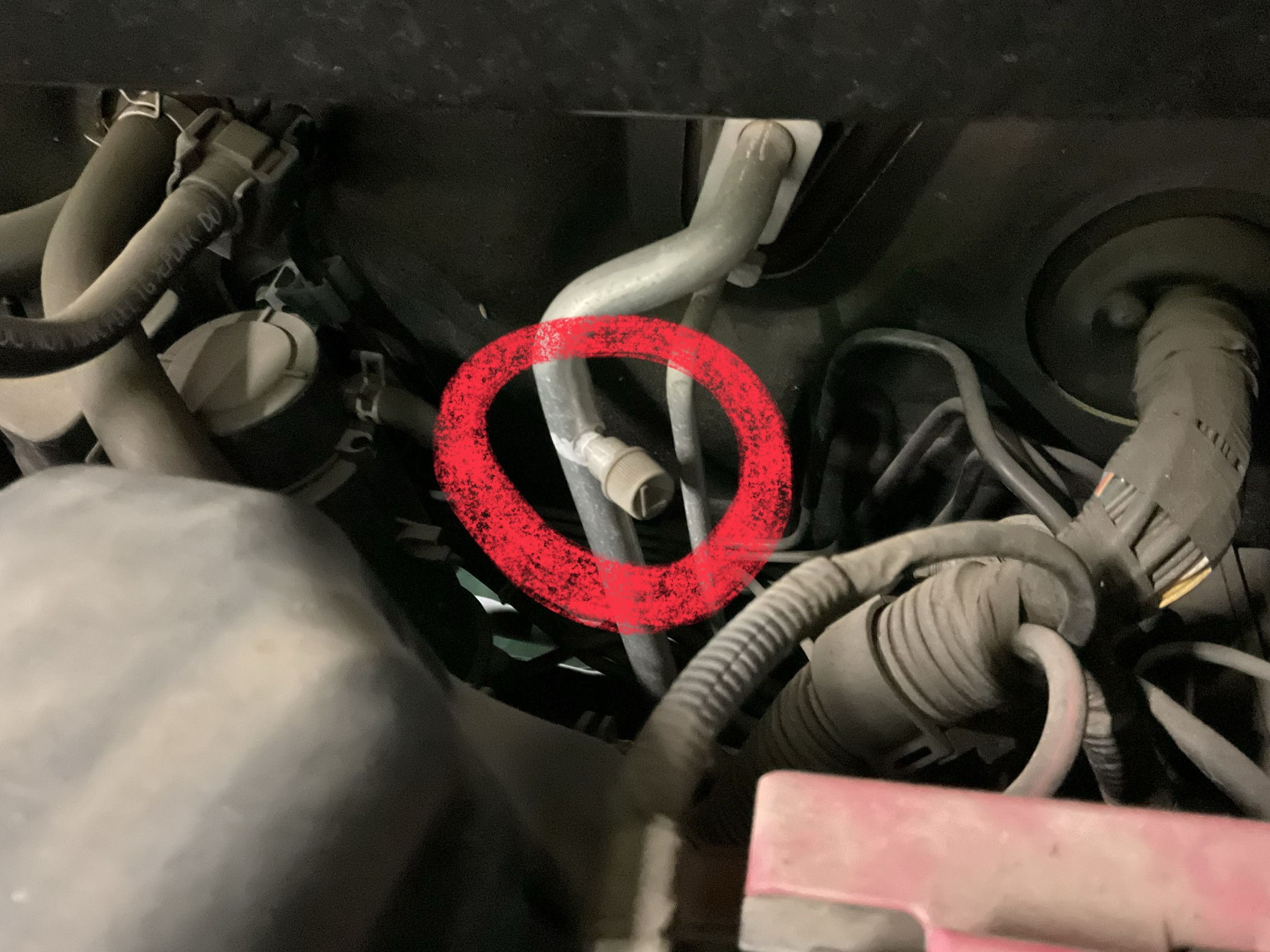エンジンルーム内のエアコンガスのローゲージこちらから施工します