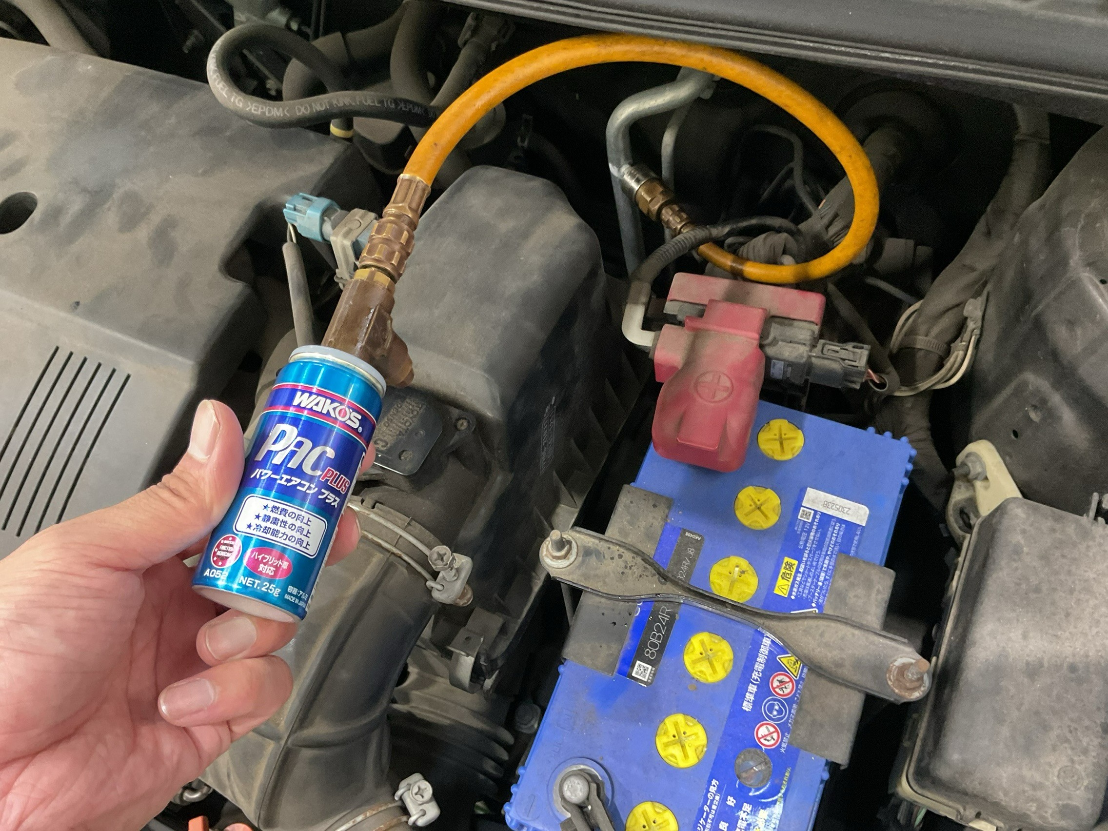 エンジンを掛けエアコン添加剤を注入するだけ!