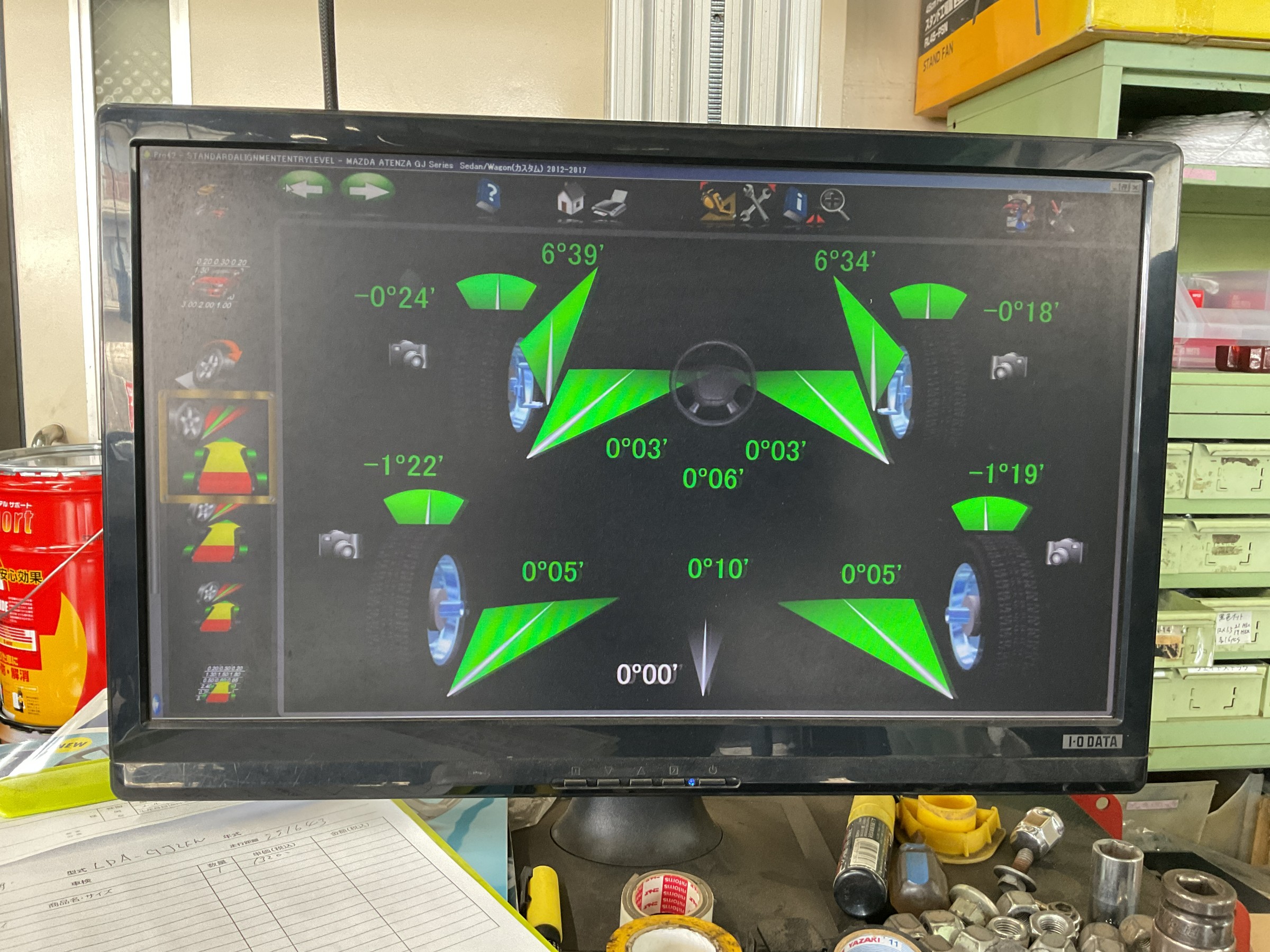 との事でご入庫となりました。アテンザは走行の安定感が高く、長距離ドライブでも疲れが少なさそうですね!