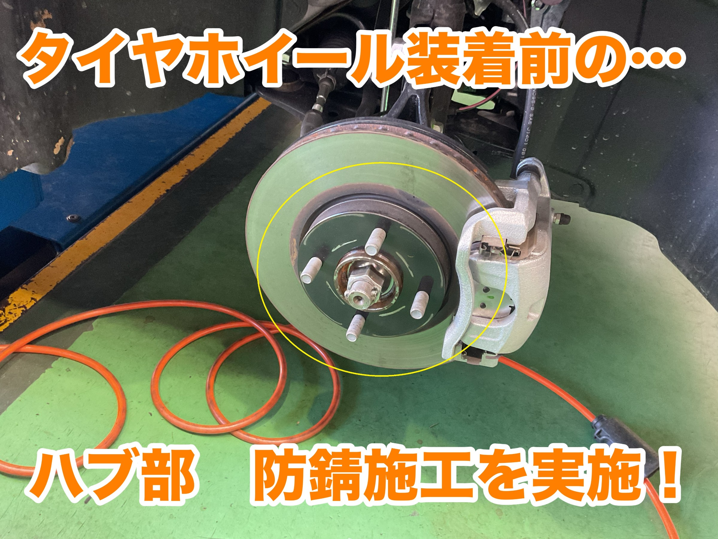 ↓↓↓ そして タイヤホイール装着前の『ハブ防錆施工』は