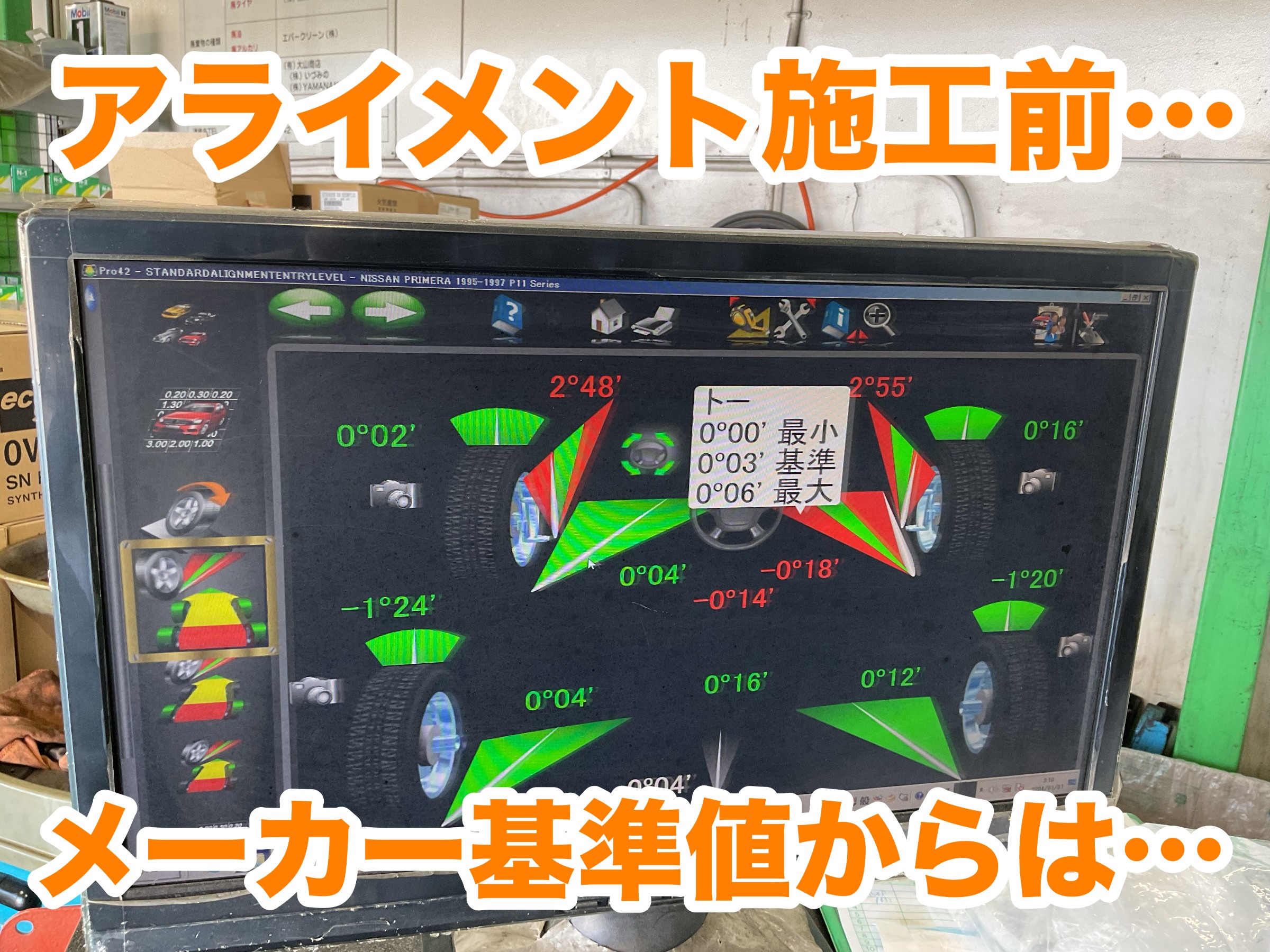 『プリメーラ』の場合は、フロント部『トー調整』を行います。