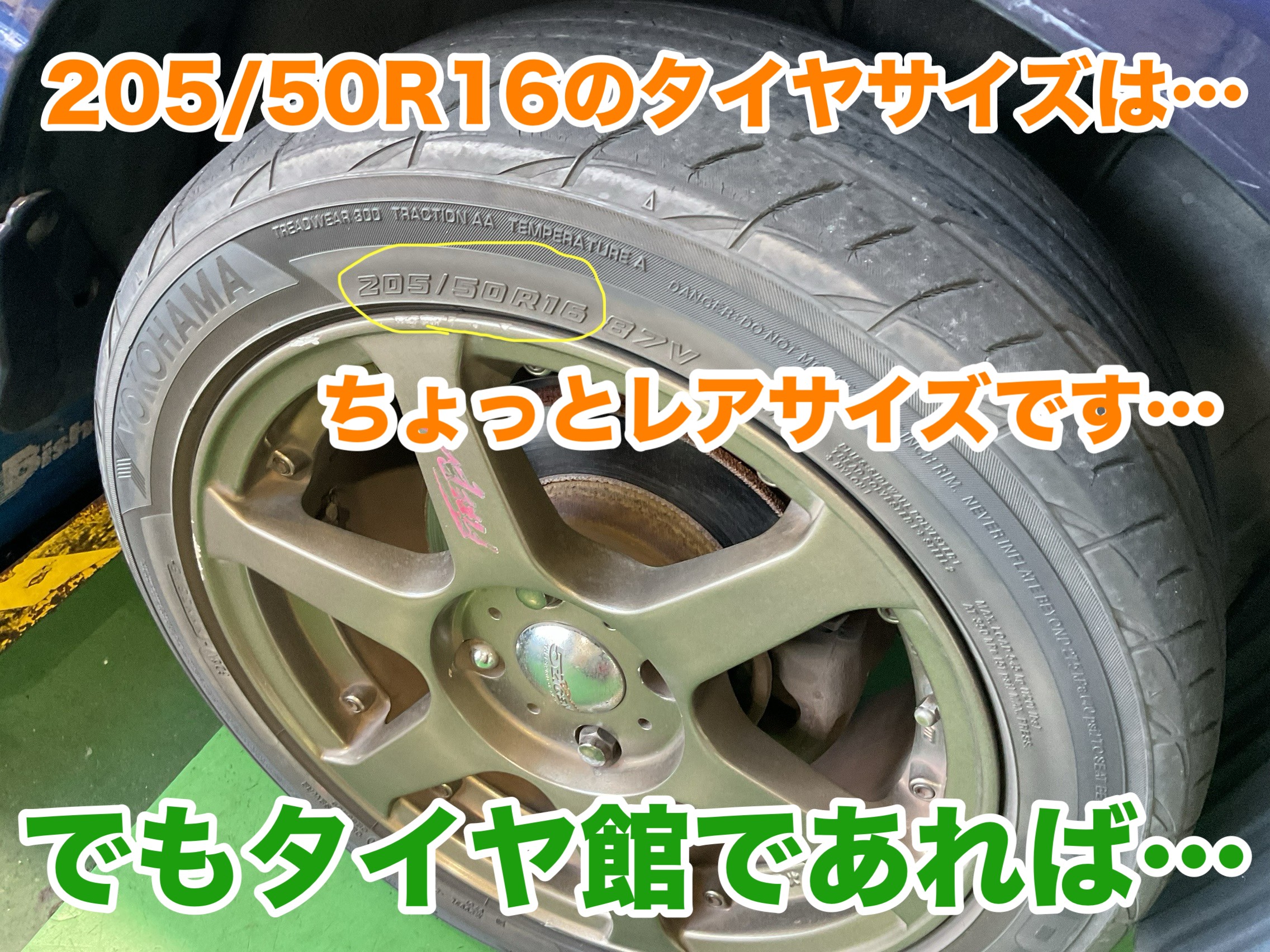 最近では あまり見かけなくなった『205/50R16』になります・・・。