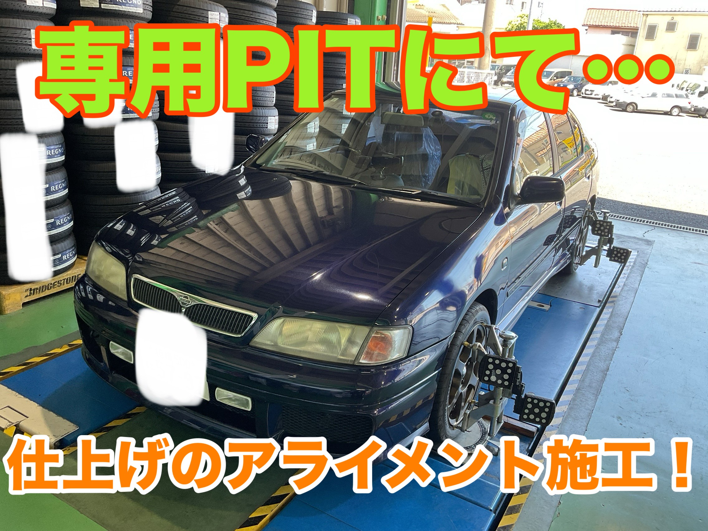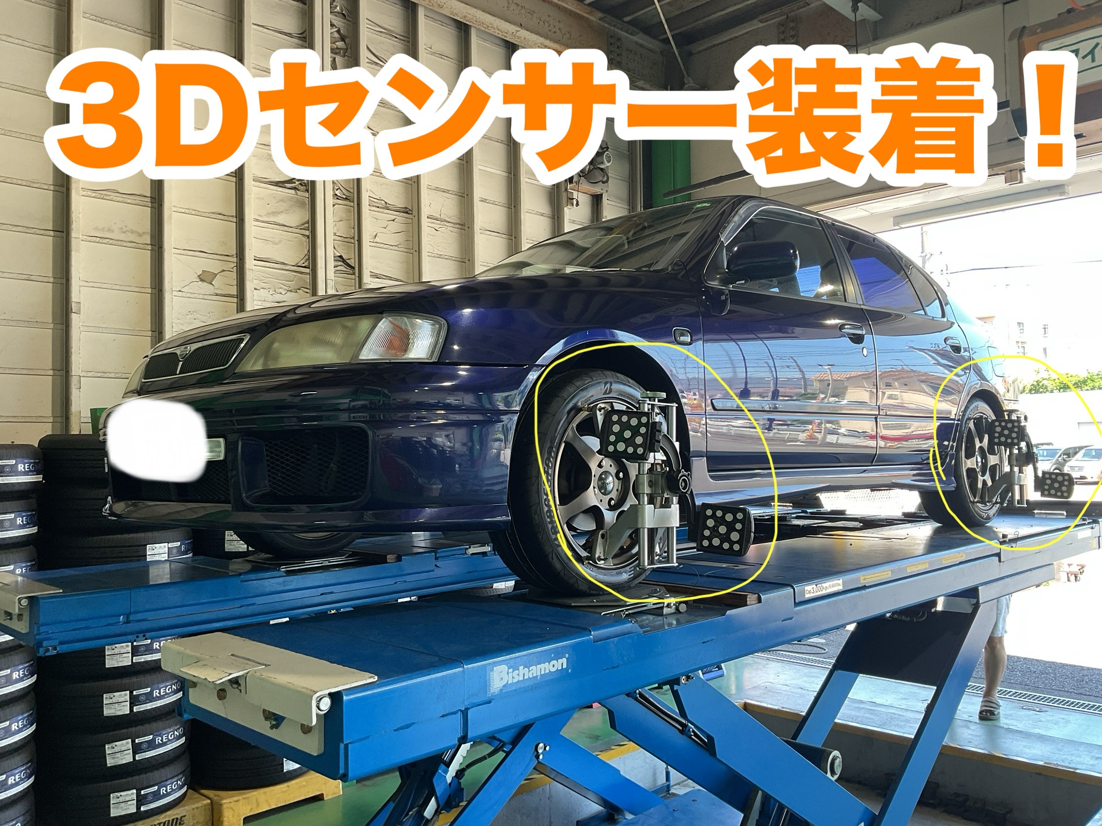 早速 車両に装着し 仕上げのアライメント施工に取り掛かります!!!