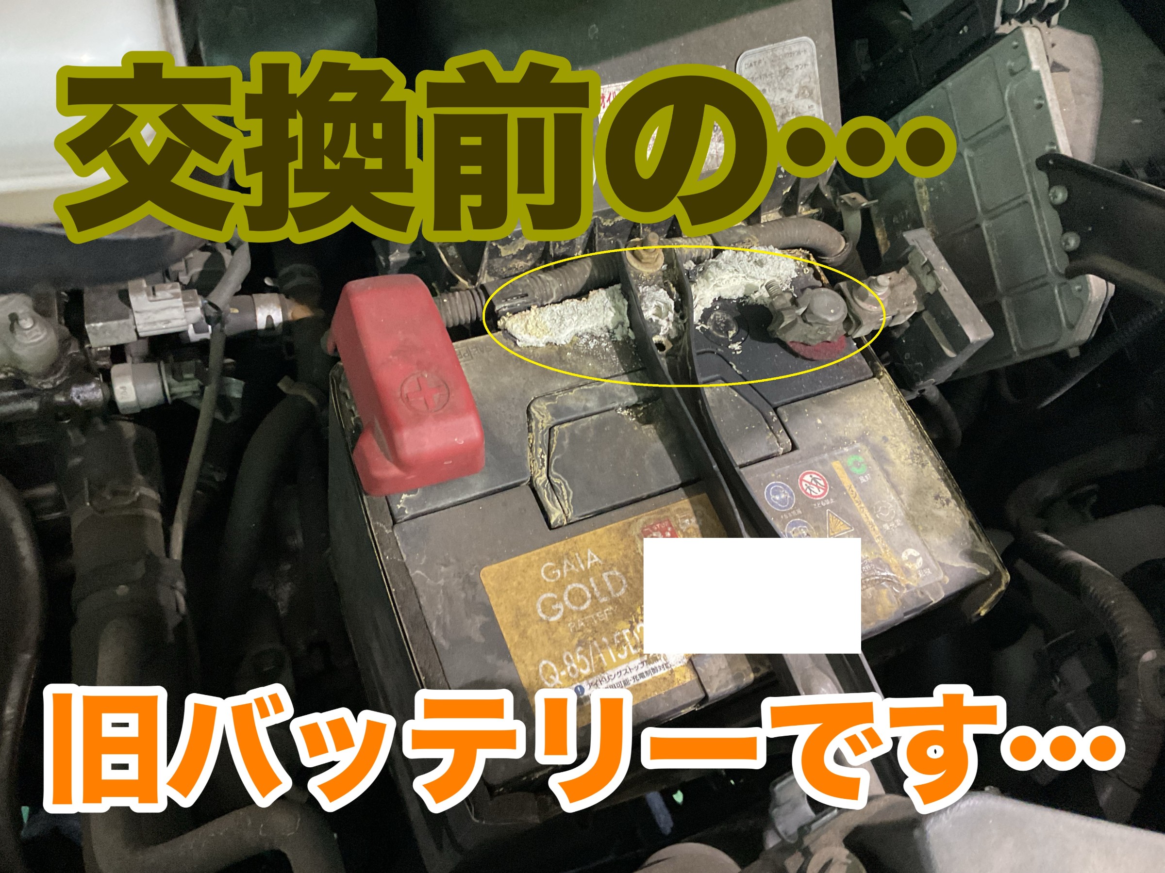 ↓↓↓ こちらが、交換前の旧バッテリーです・・・。(黄色〇印)