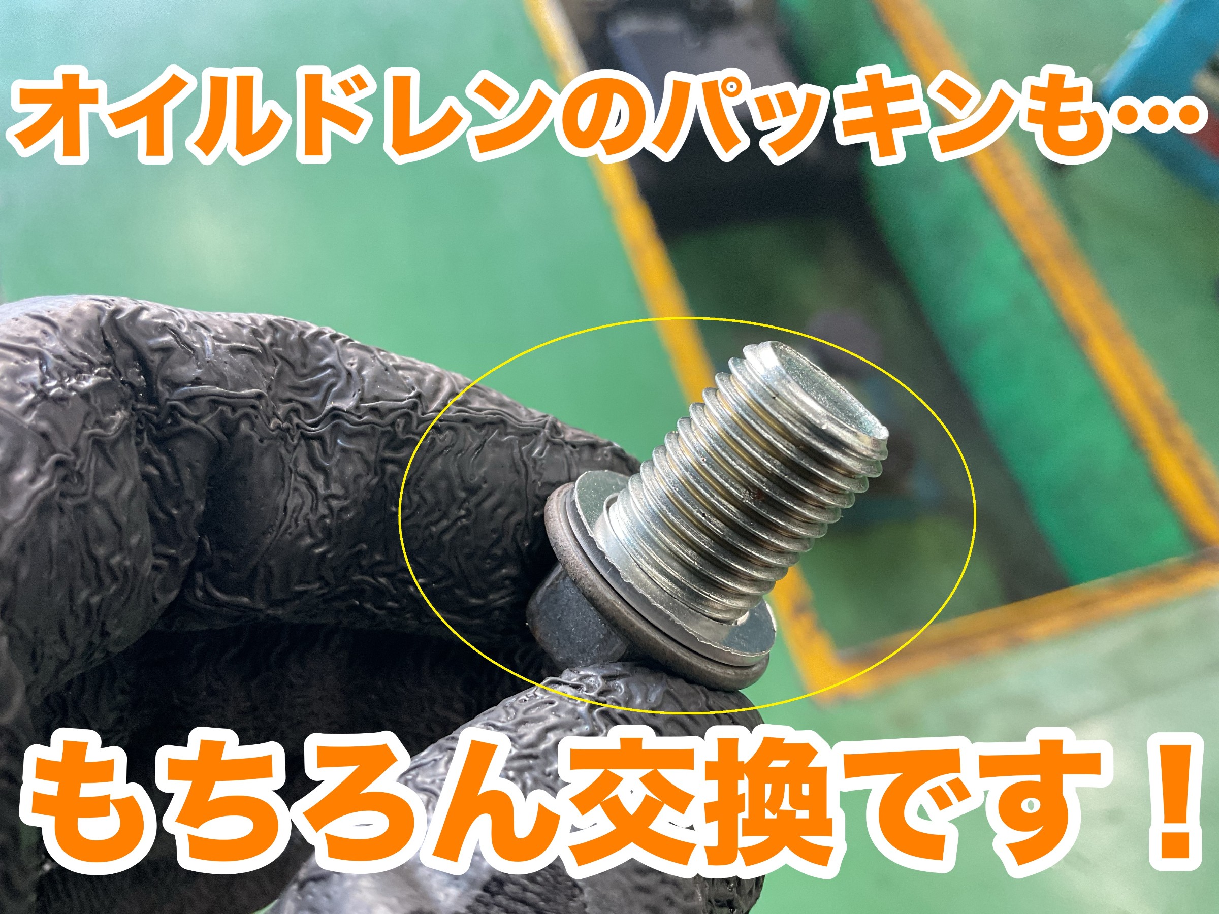 ↓↓↓ もちろん 『オイルドレンパッキン』もこの機に交換致します。(黄色〇印)
